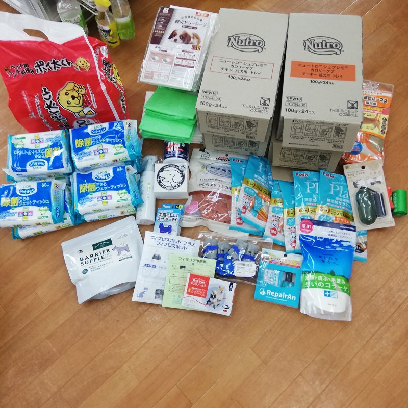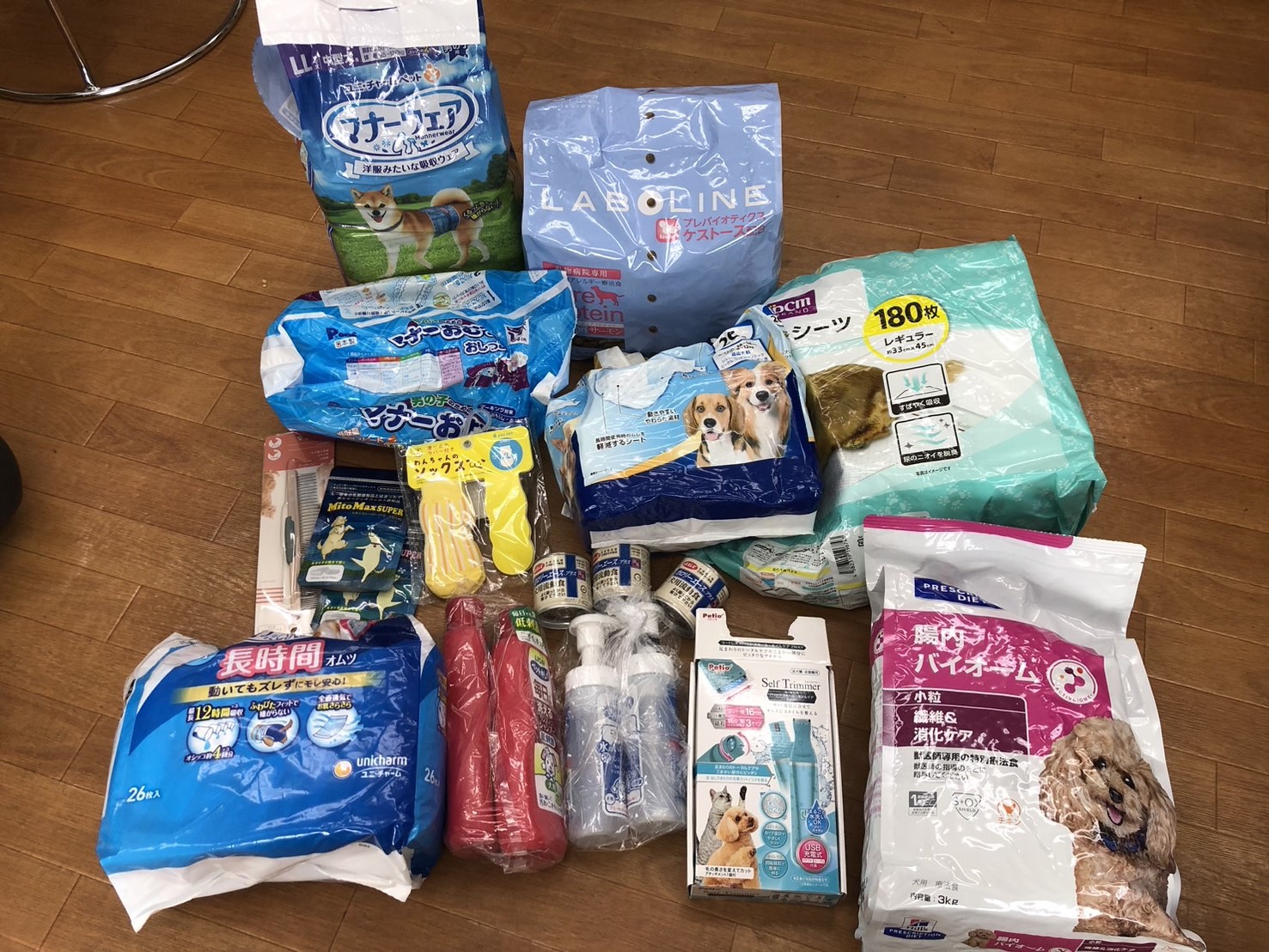 オムツやシーツ、ドライフード、バリカンやシャンプーなど沢山のご支援をいただきました。