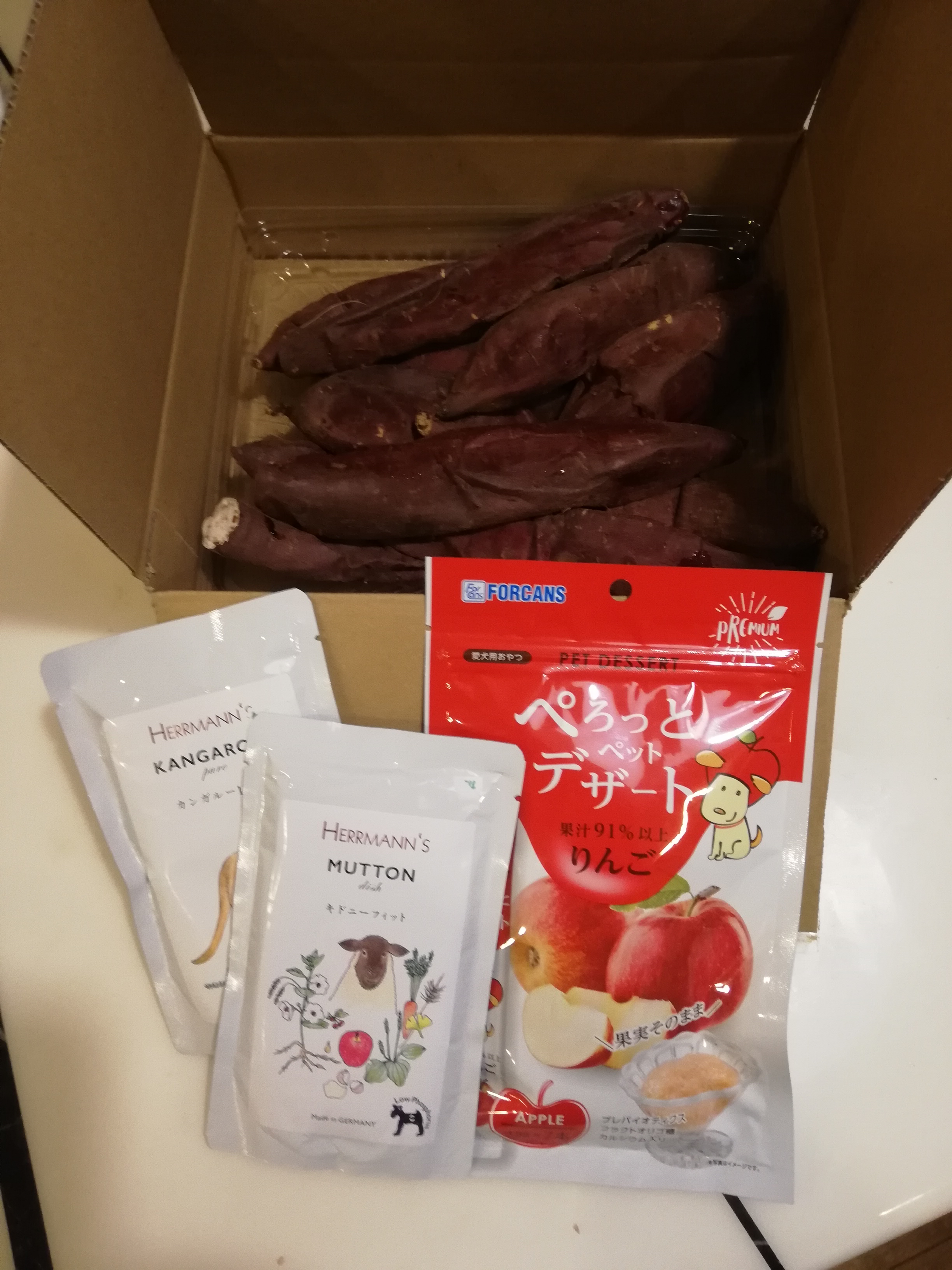 卒業犬Kai君里親Kai姉ちゃん様が一周忌を迎えるKai君のために美味しい焼き芋を買ってきたので、合宿所にもご支援くださいました。食欲のなくなっていたススムも喜んでいただきました。ありがとうございます。