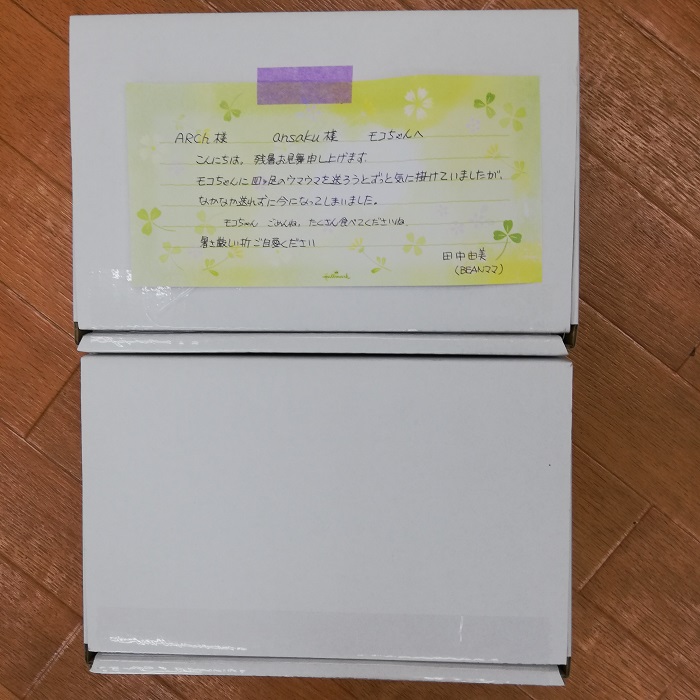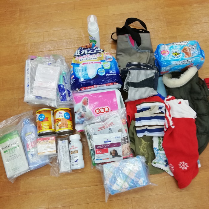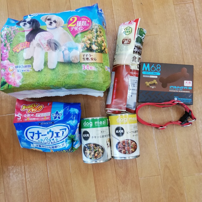横須賀市のwakawaka様より、愛犬アーリーちゃんのためにご用意されていた たくさんのものをARChっこ達へと頂きました。病状急変で亡くなってしまったアーリーちゃんが食べられるものが変わって試行錯誤でいろいろと買いそろえられていたもの、とのこと。まだまだ、とのお気持ちがあふれていて胸が詰まる思い出受け取らせていただきました。