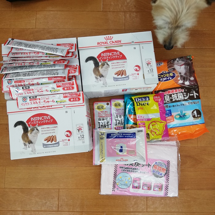 柏市のぴぐもん様より、キャットフードやエルネぎーちゅ~る、シートなどをご支援頂きました。