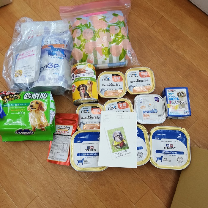 渋谷区のいちこ様より、愛犬ちゃんの為にご準備された腎臓ケア食やオムツをご支援頂きました。