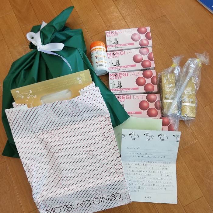 ツモ君の好きなフードやおやつはお持たせにもさせていただきました。みんなで大切に使わせて頂きます。