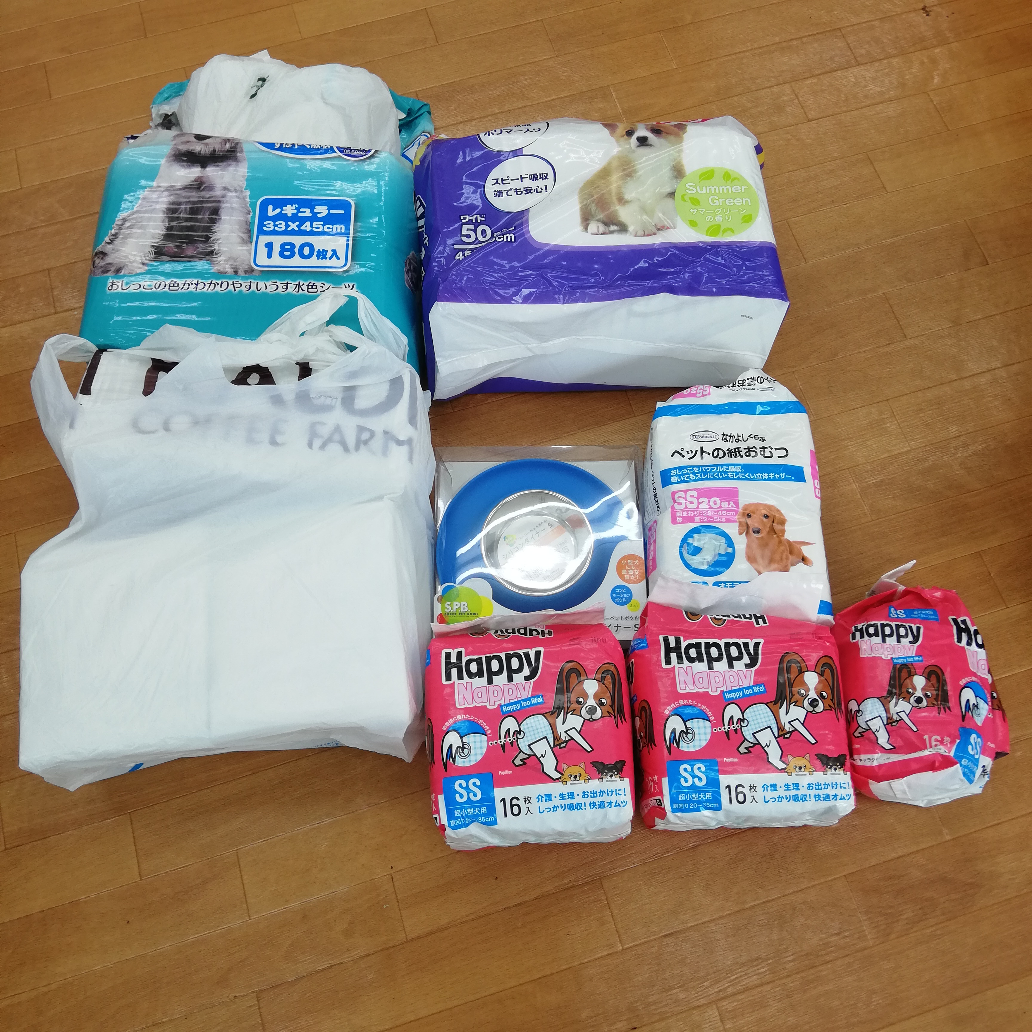 松戸市のHiromin915様より、愛犬ちゃんの為のオムツ、シーツ、新品の食器などを頂きました。事務所までお届けいただきありがとうございました。