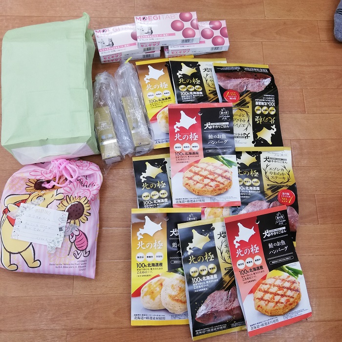 サポートファミリーの中央区のくうちゃんママ様より、ロコぴへのプレゼント、と合宿所のシニア達へのサプリ、ツモ君のDフラクション、ウマウマなどのご支援を頂きました。いつもありがとうございます!!