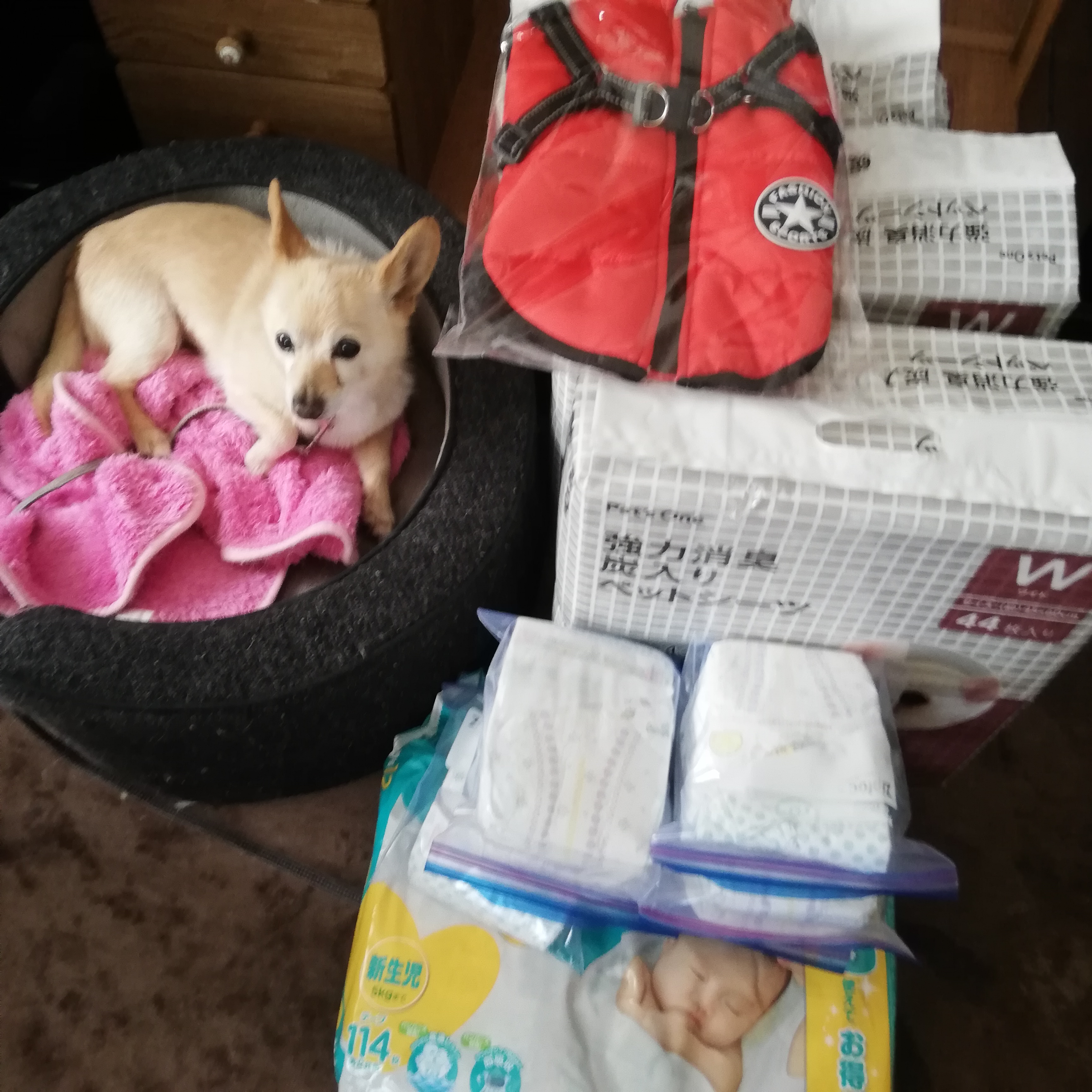 卒業っこアパ君のまま様から、シーツやオムツ、ハーネスのご支援を頂きました。保護犬達のために大切に活用させていただきます。