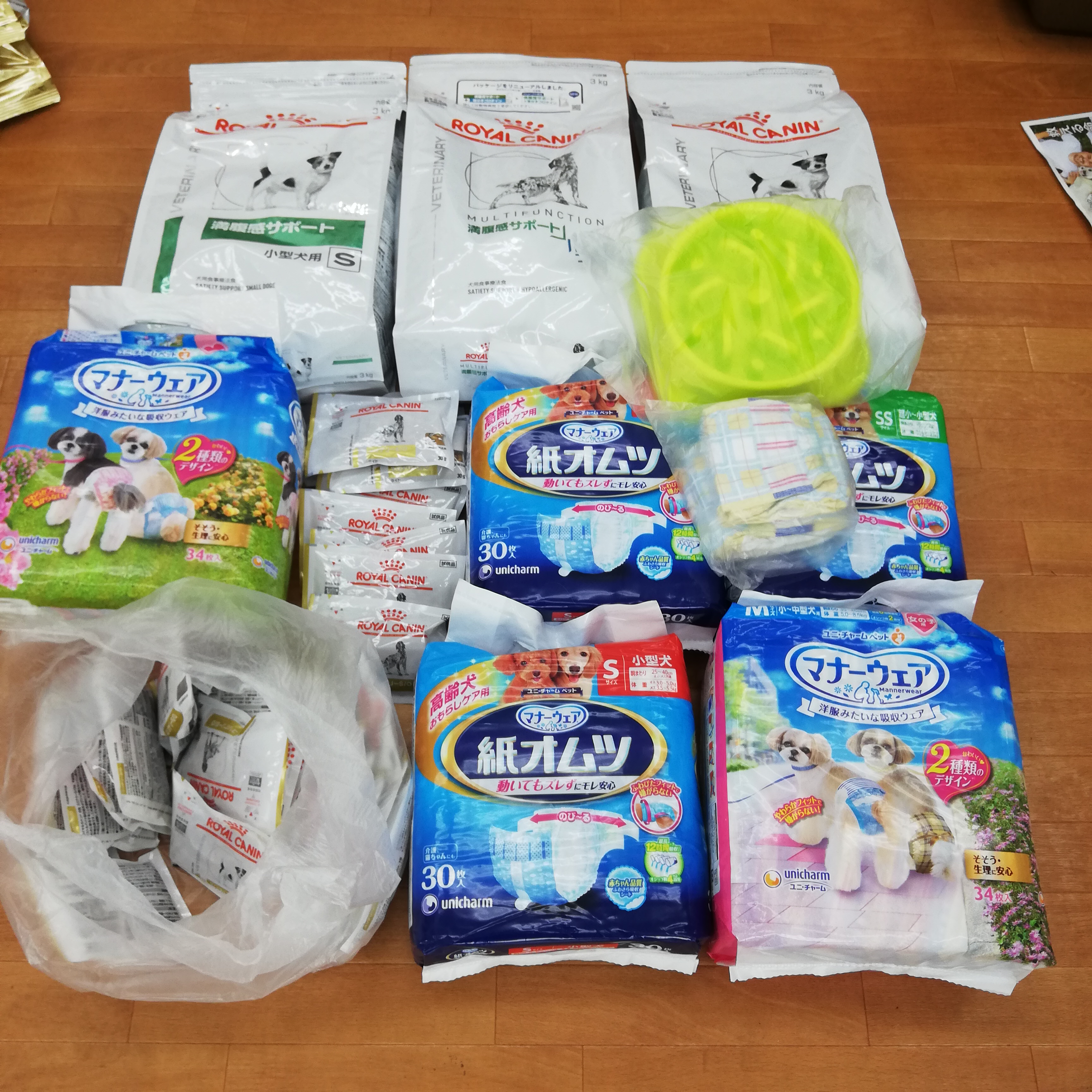 新潟県のばなな様より、処方食フードやオムツ、早食い防止食器などのご支援を頂きました。