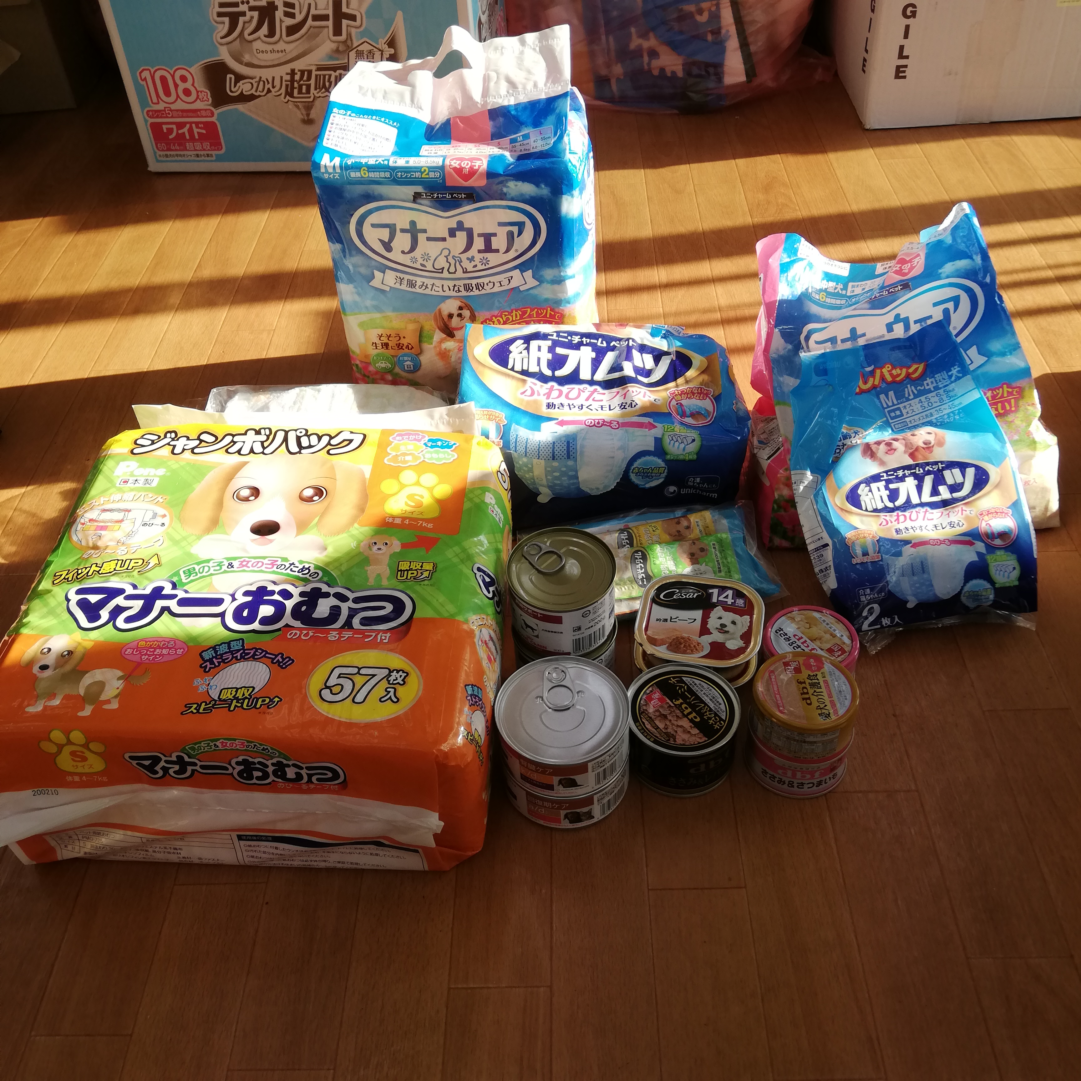 鎌倉市のBEANママ様より、オムツとフードのご支援を頂きました。愛犬あかねちゃんが痩せてサイズが合わなくなった、とのこと、介護の中保護犬達のためにお送りいただきいつもありがとうございます。