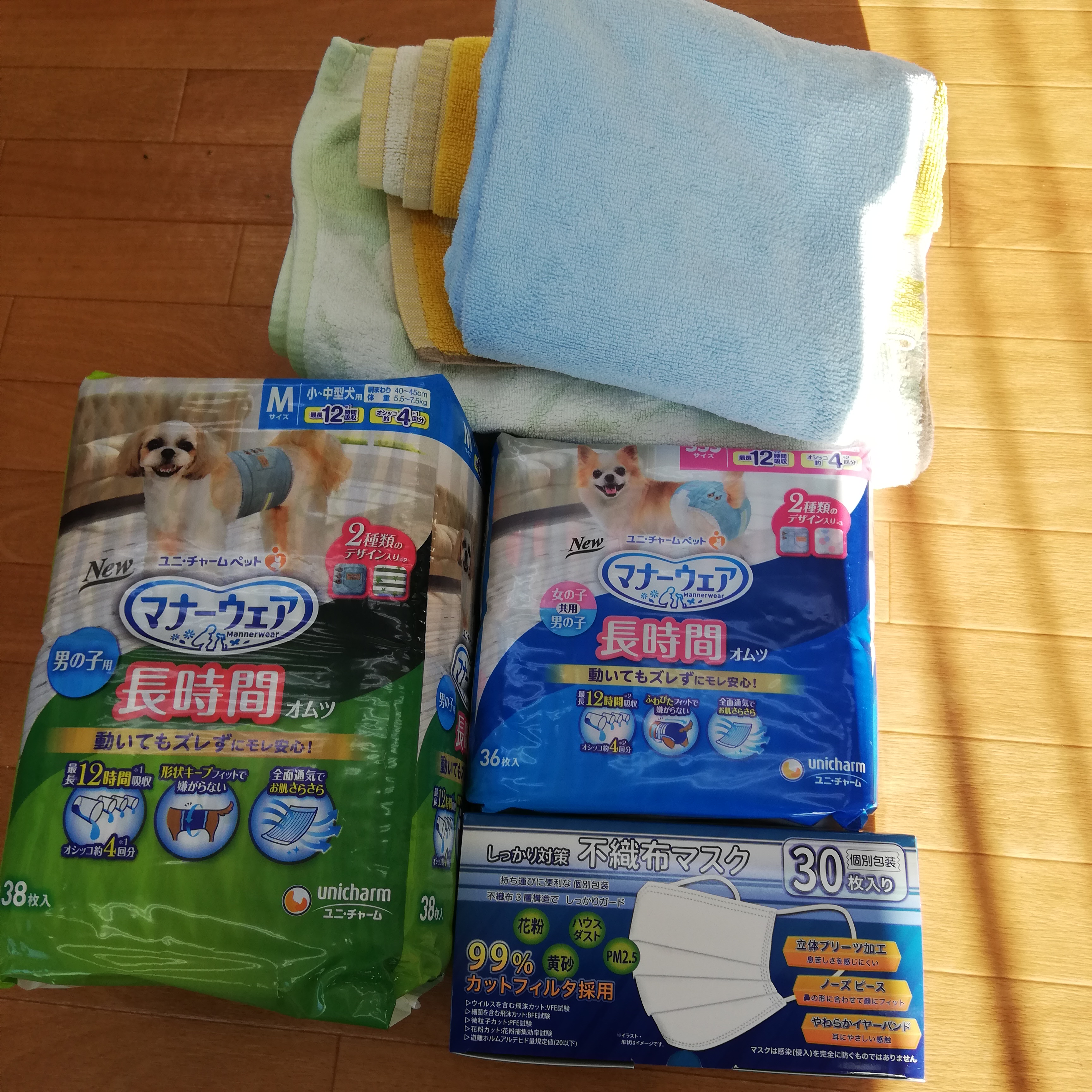 世田谷区のダックスR様より、オムツ、タオル、マスクのご支援を頂きました。いつもARChを応援くださりありがとうございます。