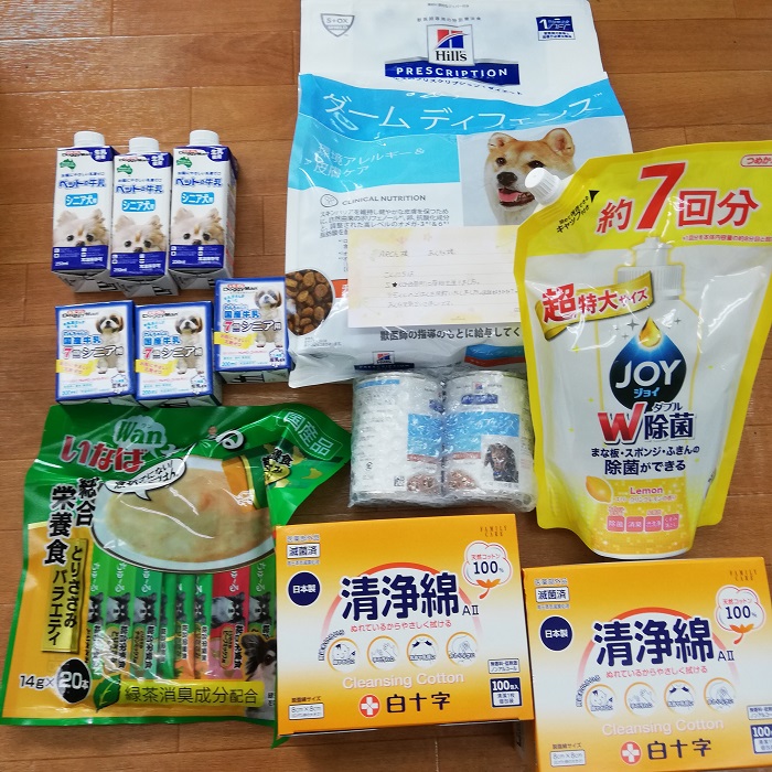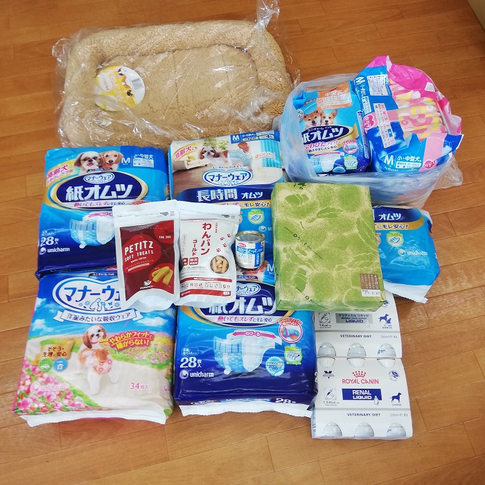 港区の粂川様より、闘病されていた愛犬ちゃんおむつやクリティカルリキッド、ベッド、などのご支援を頂きました。ありがとうございます。