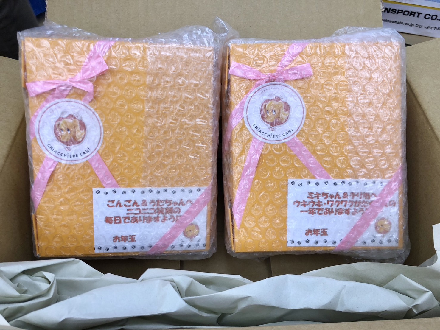 コミュニティパーティでの参加犬たちへのお土産や、ごんちゃんうたちゃん、ミキちゃんチリくんへのお栗もの、個々スタッフへのお気遣いをいただきました。