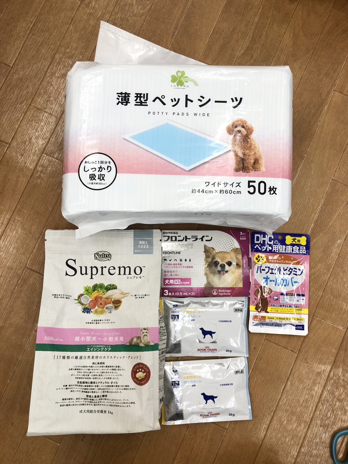 トイレシーツやおむつ、イヤークリーナー、フード類などのご支援をいただきました。