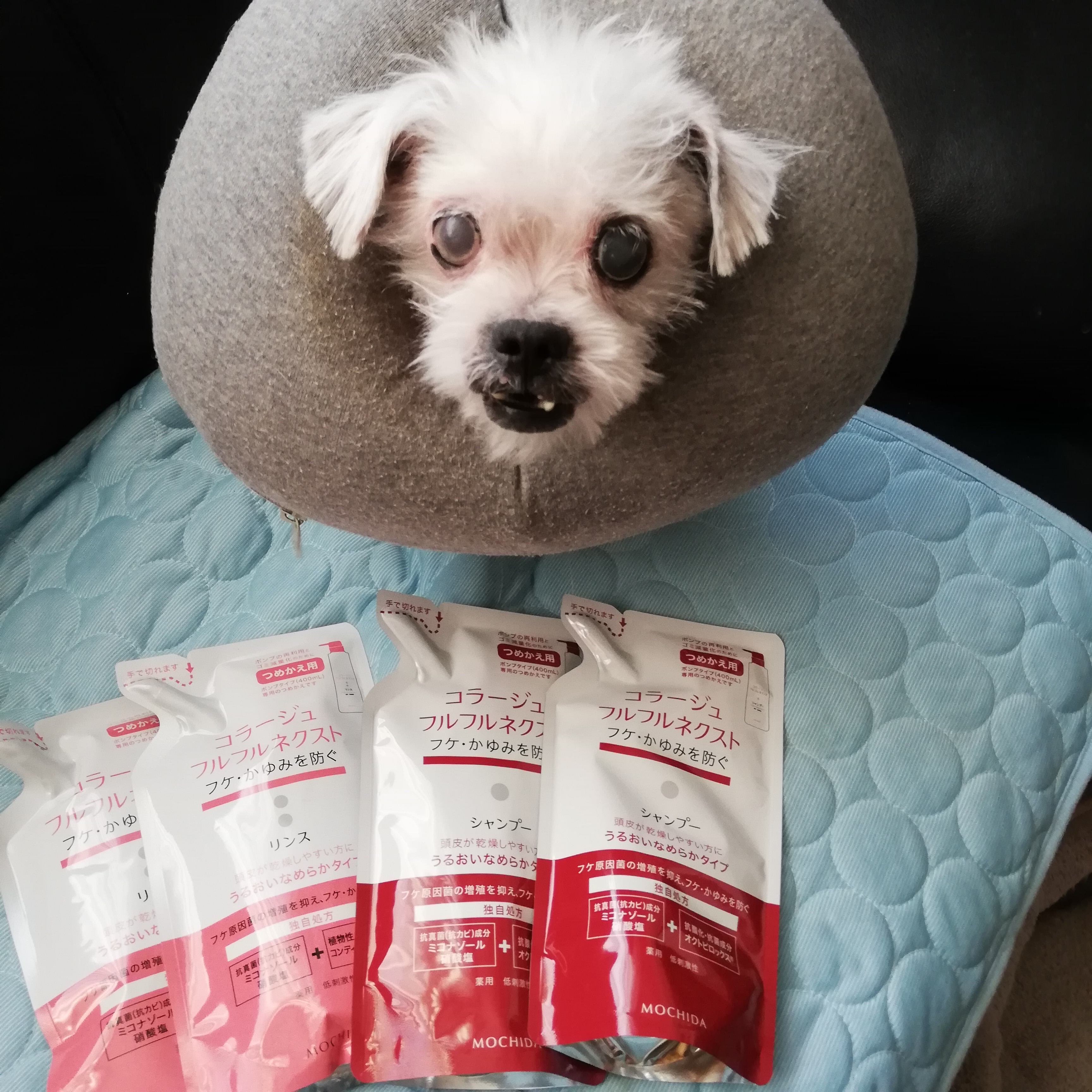 だい&メープル、さっちゃんママ様より、シャンプーケアの必要な子が使っているコラージュフルフルと、清浄綿、マスクのご支援を頂きました。