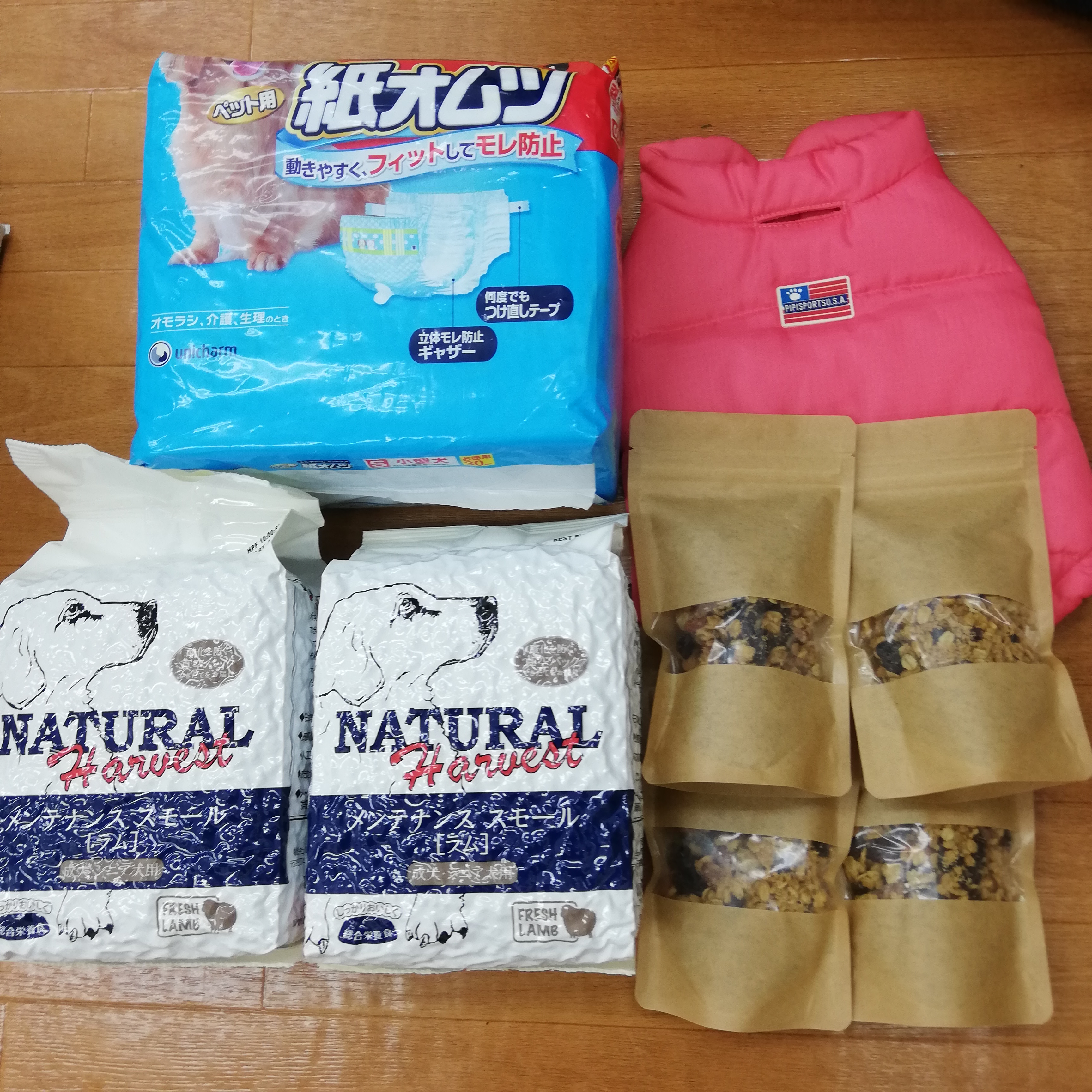 金沢のハルちゃん里親H様より、プレミアムフード、おむつ、手作りグラノーラを頂きました。
