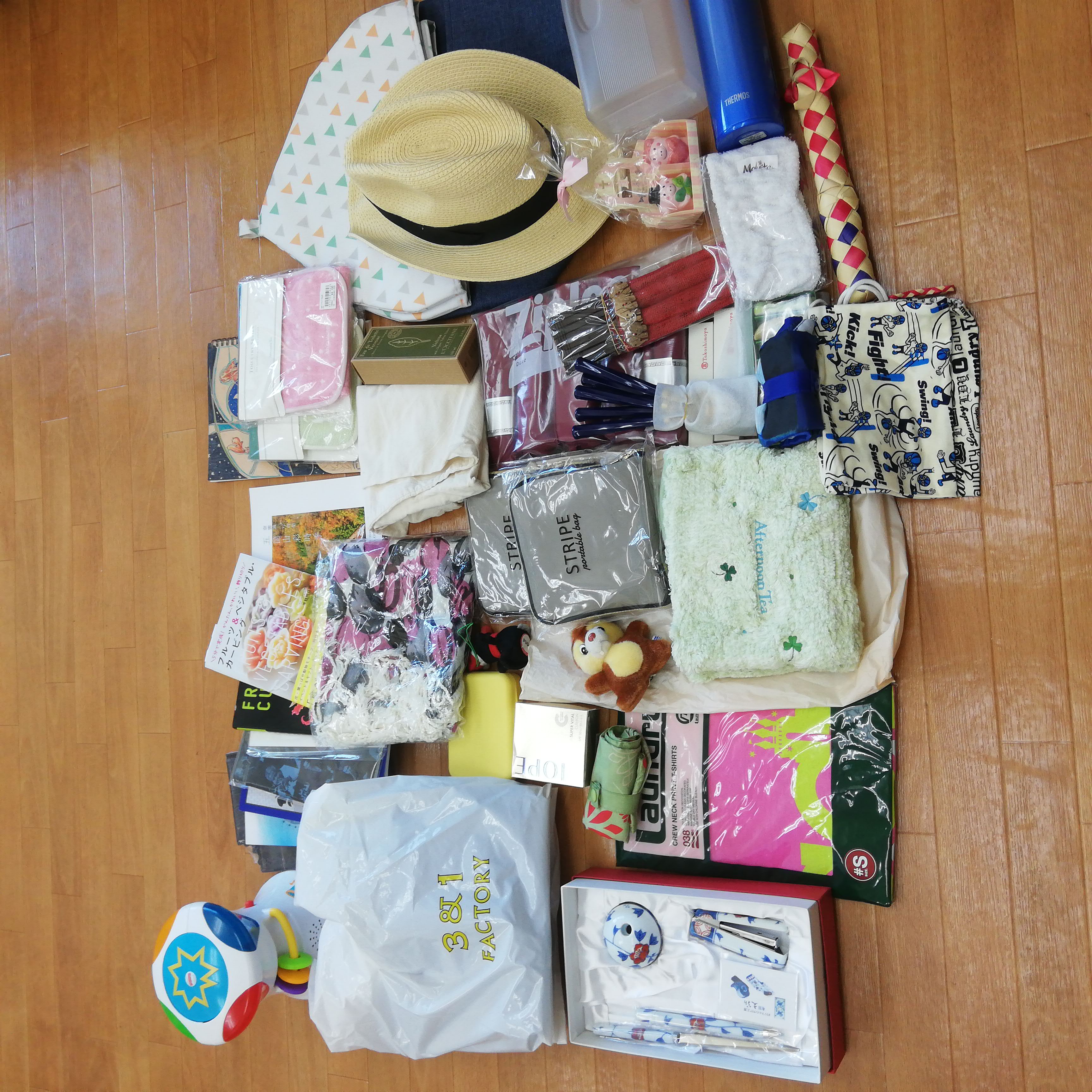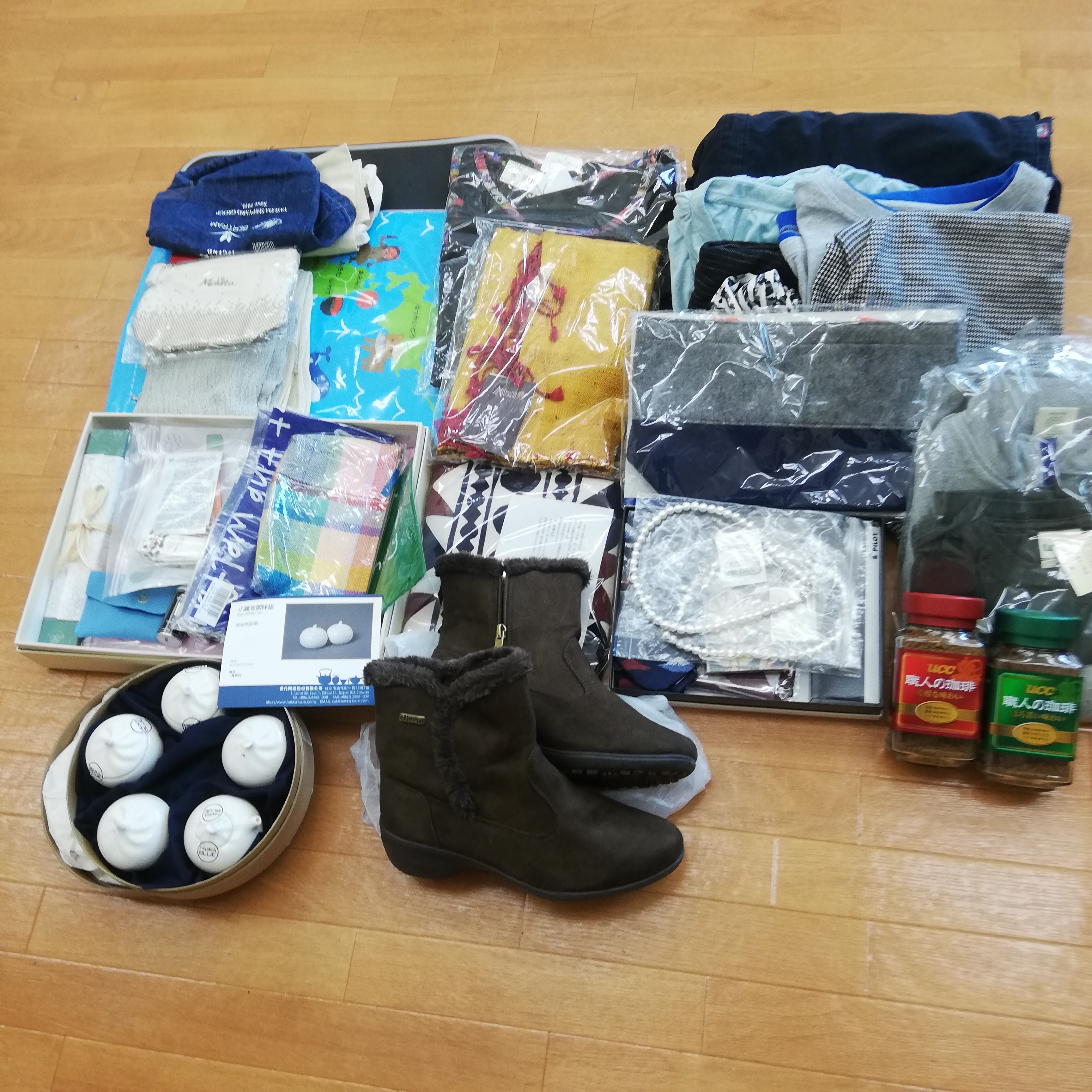 世田谷区のくむ様より、たくさんのフリマ物資をお送り頂きました。写真撮影の為に出したら箱に入らなくなったです^^; 荷造り、発送も大変だったと思います。