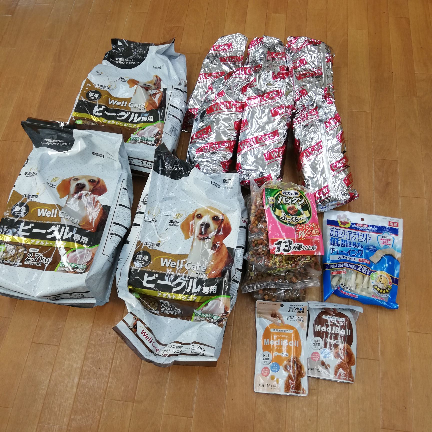 サプリや缶詰、おやつなどたくさんのご支援をいただきました。