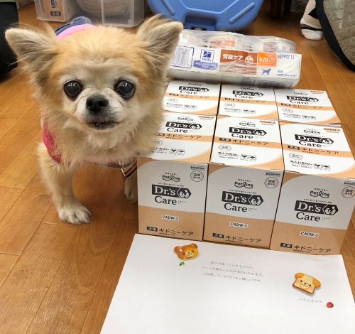 四葉ちゃんへたくさんのおいしい腎臓食、そしてサプリメントをご支援いただきました。