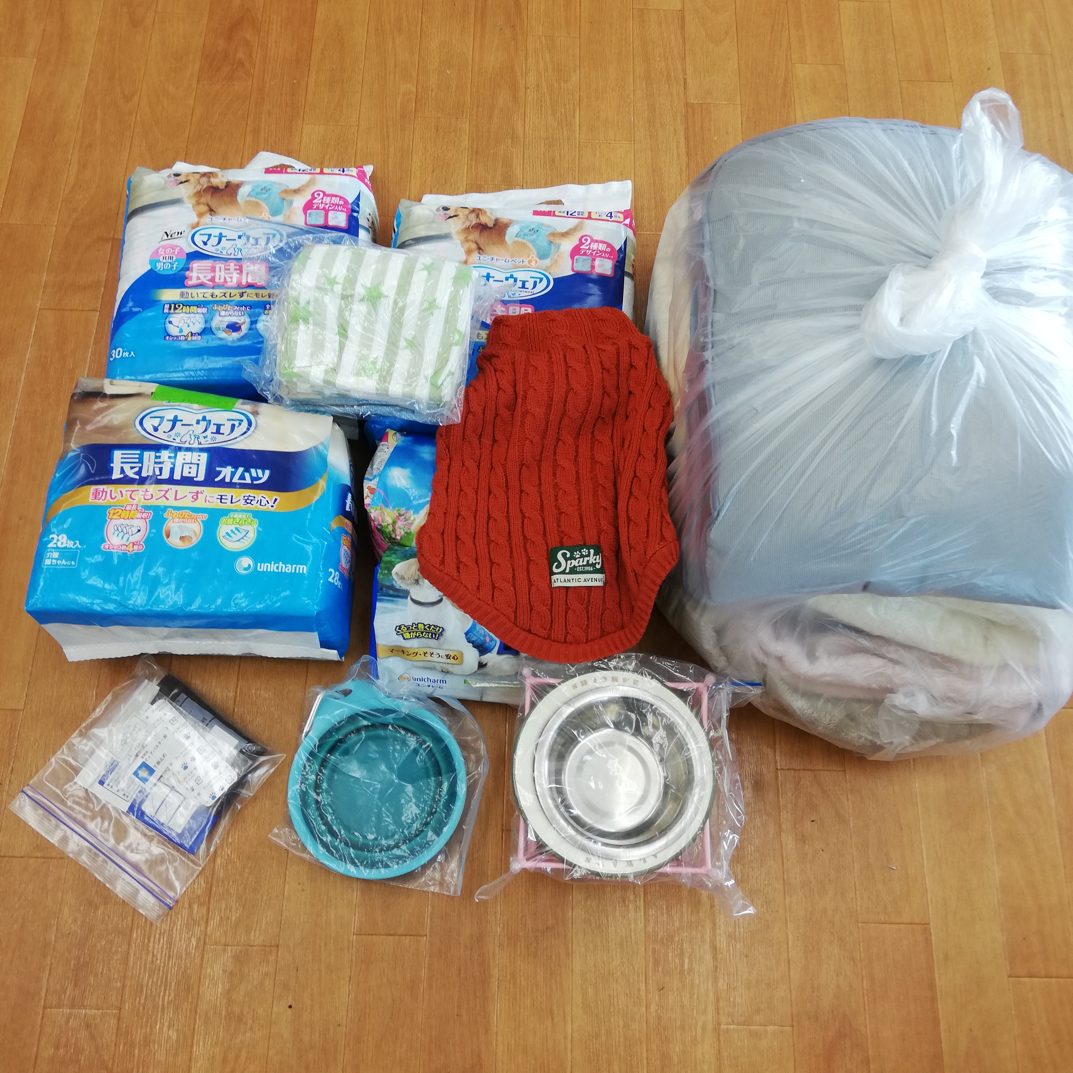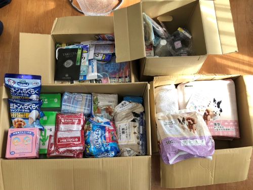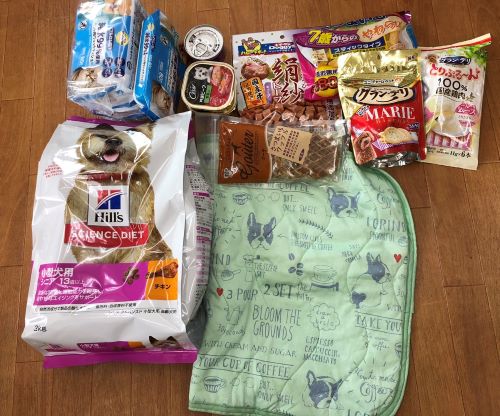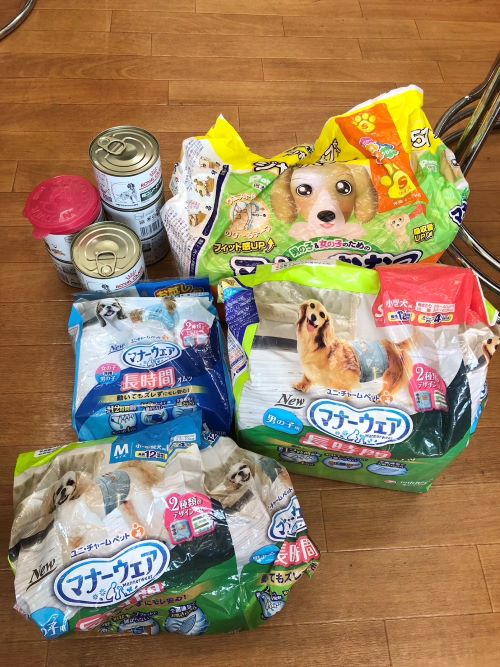 シーツやおむつ、シャンプーやおやつ、フードなど沢山のご支援をいただきました。