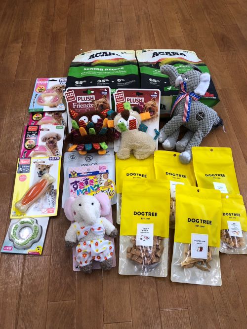 おやつ、おもちゃ、フード等沢山のご支援をいただきました。