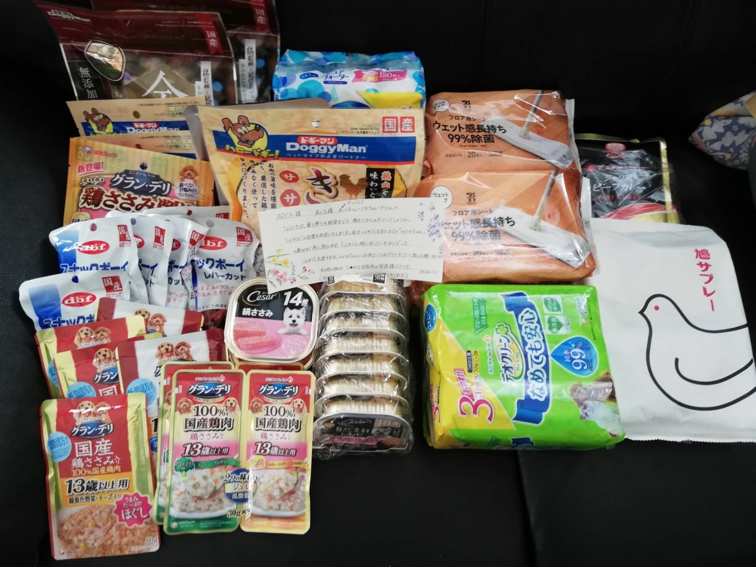 ご愛犬に用意されていたフードやおやつを沢山ご支援いただきました。