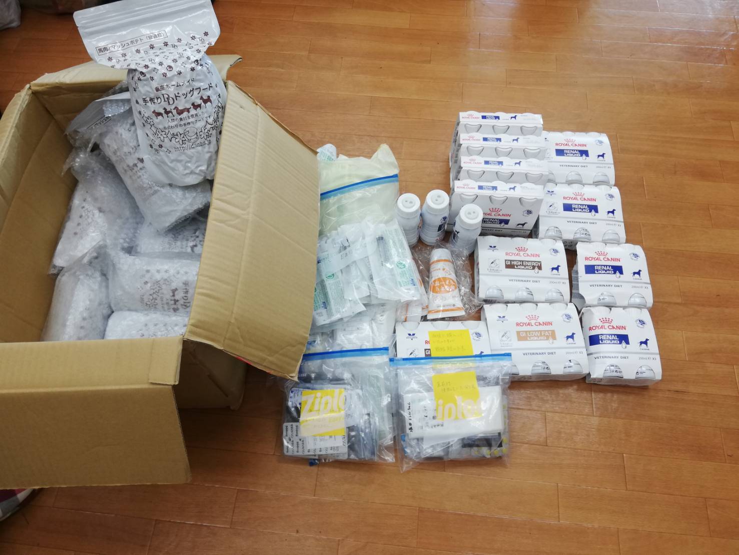 神戸市の木村様より、愛犬ショコラさんの為にご用意されていた腎臓フードやおやつ、シーツ、ウェットティッシュなどをご支援いただきました。
