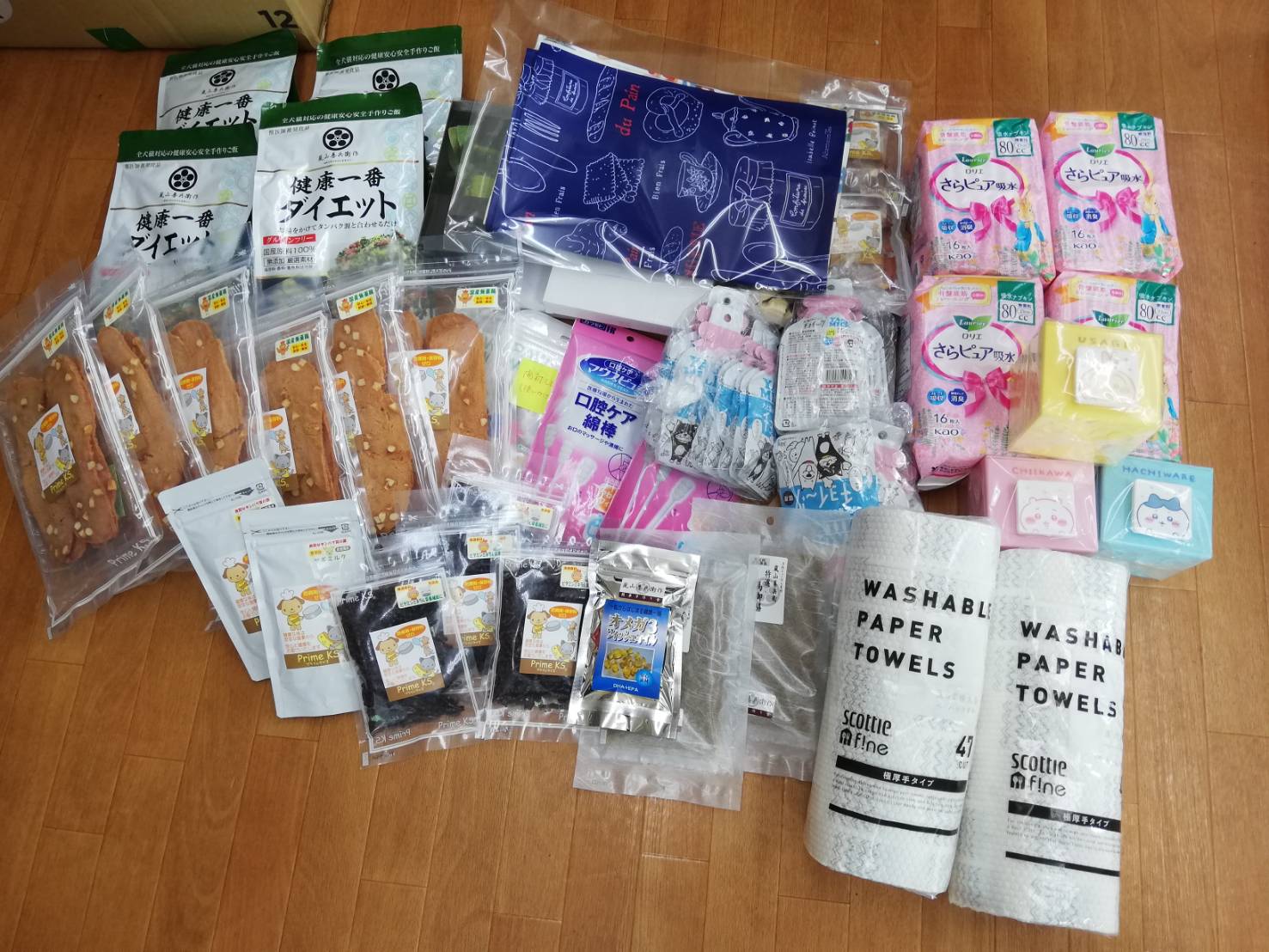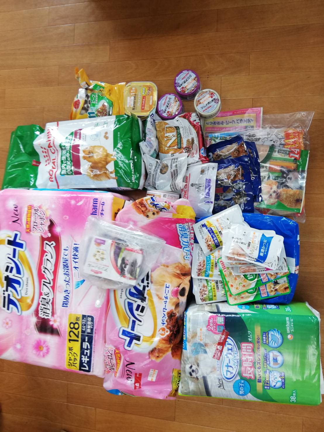 流山市のひらまつ様から、愛犬さんの為にご用意されていた沢山のフードやおやつ、シーツ、サプリメント、アンチノールなどを頂きました。