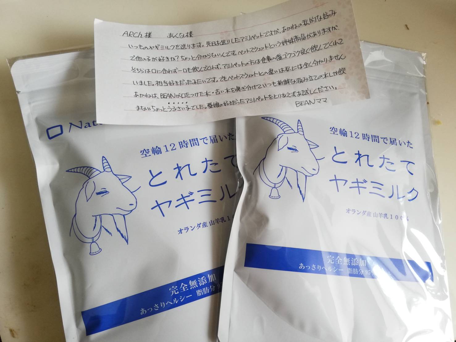 鎌倉市のBEANママ様から、まっくすとミキちゃんにアミノペッツを頂きました。
