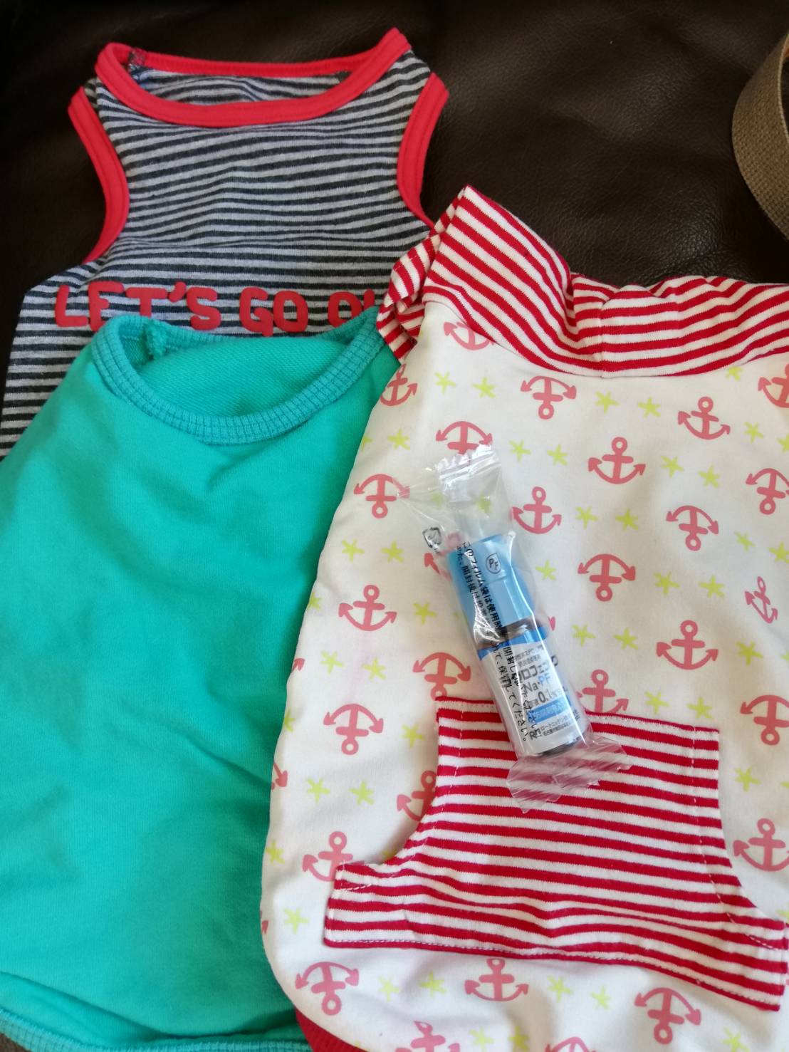 練馬区の優奈様から、ワンコ服と点眼薬のご支援をいただきました。