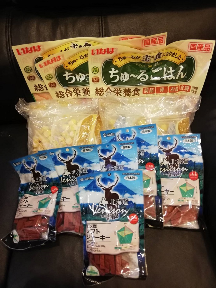 サポートファミリーでもある、だい&メープル、さっちゃんママ様より、ロコぴの為のキドナやシニアフードなどと使い捨ておしぼりのご支援を頂きました。
