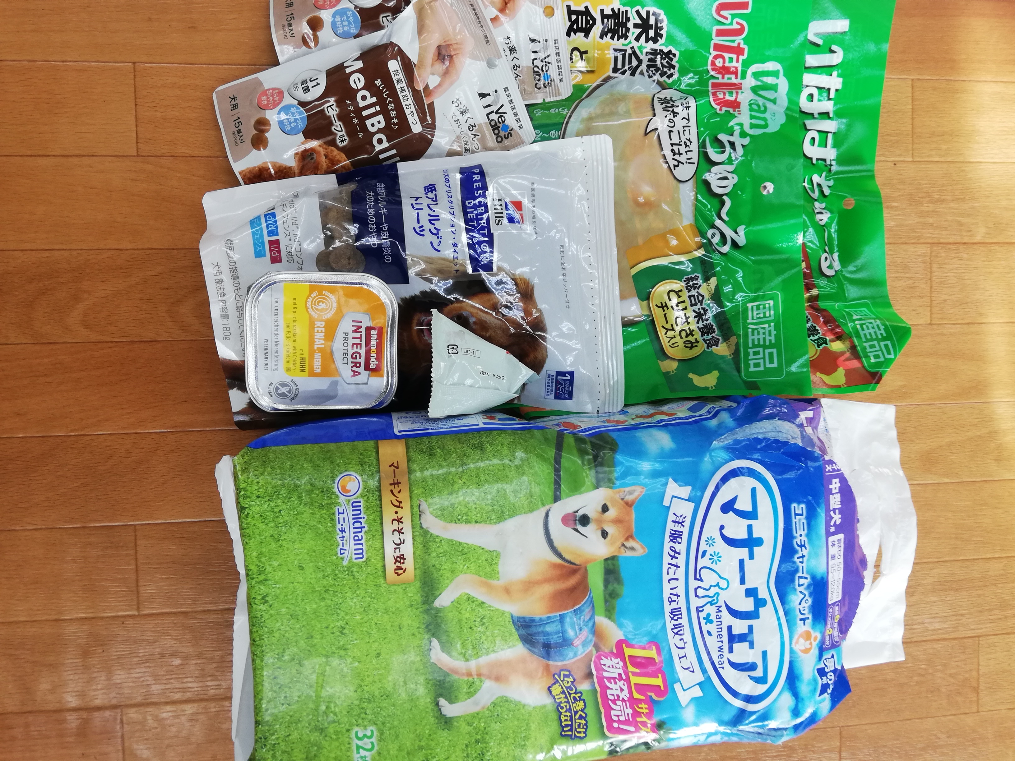 八千代市の古閑アレックス様より、愛犬さんの為にご用意されていた処方食フード、メディボール、ペットシーツ、オムツ、体温計セットなどのたくさんのご支援を頂きました。