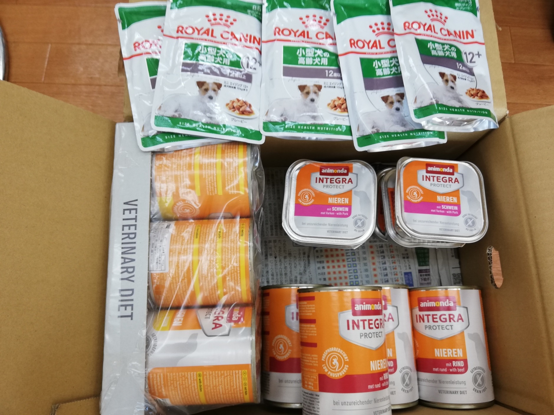 茂原市の陽気なヨーキー様から腎臓食各種缶詰とオムツ、腎臓の子達が食べている低リン・低ナトリウムちゅーる、のご支援を頂きました。