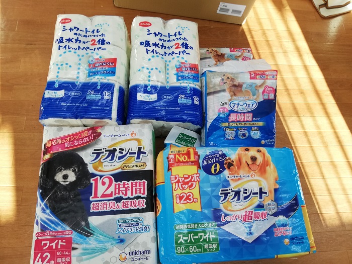 松戸市の佐久間様より、愛犬さんの為にご用意されていたペットシーツ、やシニア用フード、処方食缶詰、点眼薬などをご支援いただきました。事務所までお届けくださりありがとうございました。
