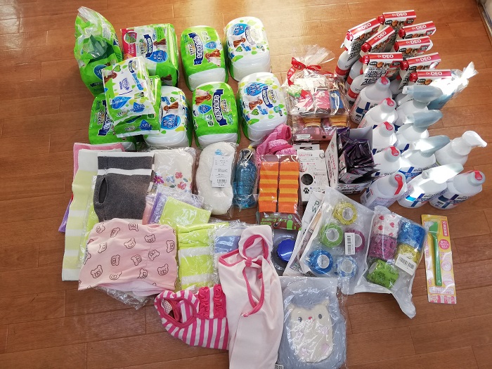 アンドレア里親下妻市のK様より、先代ポコちゃんの為にご用意されていたうさぎ年のウェアなどたくさんの物資のご支援を頂きました。