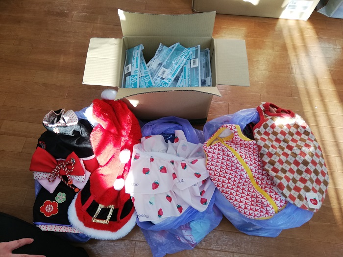 鎌ケ谷市のマロンちゃんのママさんから、マロンちゃんにご用意されていたものや未着用だったというお洋服などを保護犬達に頂きました。ありがとうございます。