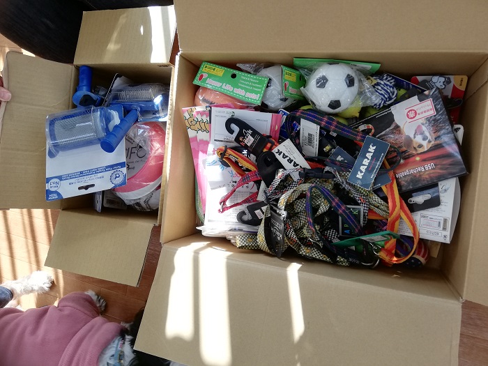 スタッフココモカさんより、新座市のハッピーテイル様からのワンコグッズのご支援を頂きました。