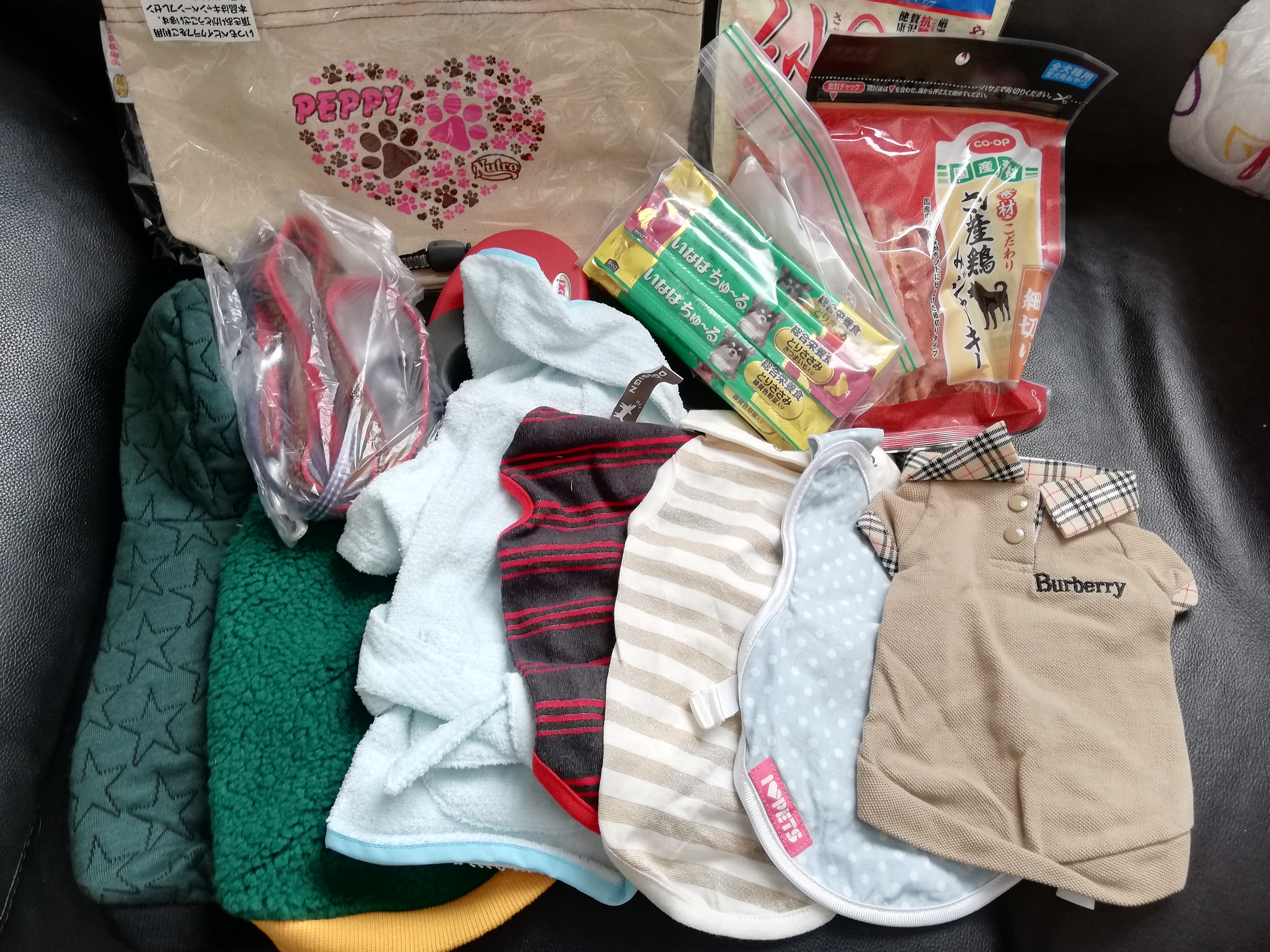 さいたま市のメイママ様から、ワンコ服やワンコ食器、きれいなあたたかいフリーズなどをたくさんいただきました。
