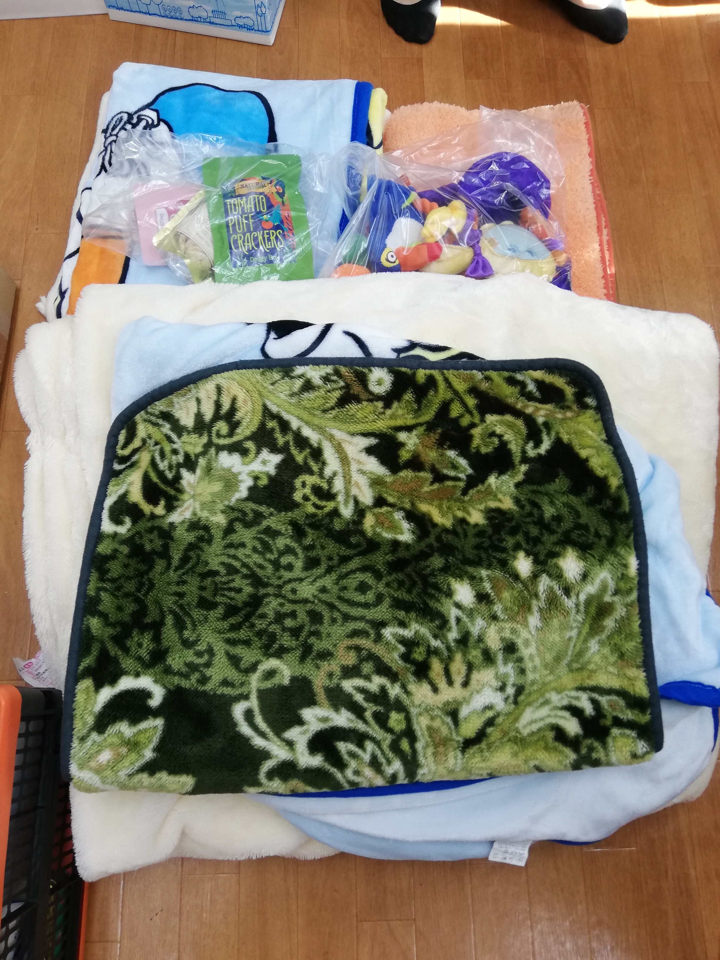 杉並区のプリレオ様より、ベッドや毛布、ブランケット、おもちゃやおやつ等のご支援を頂きました。