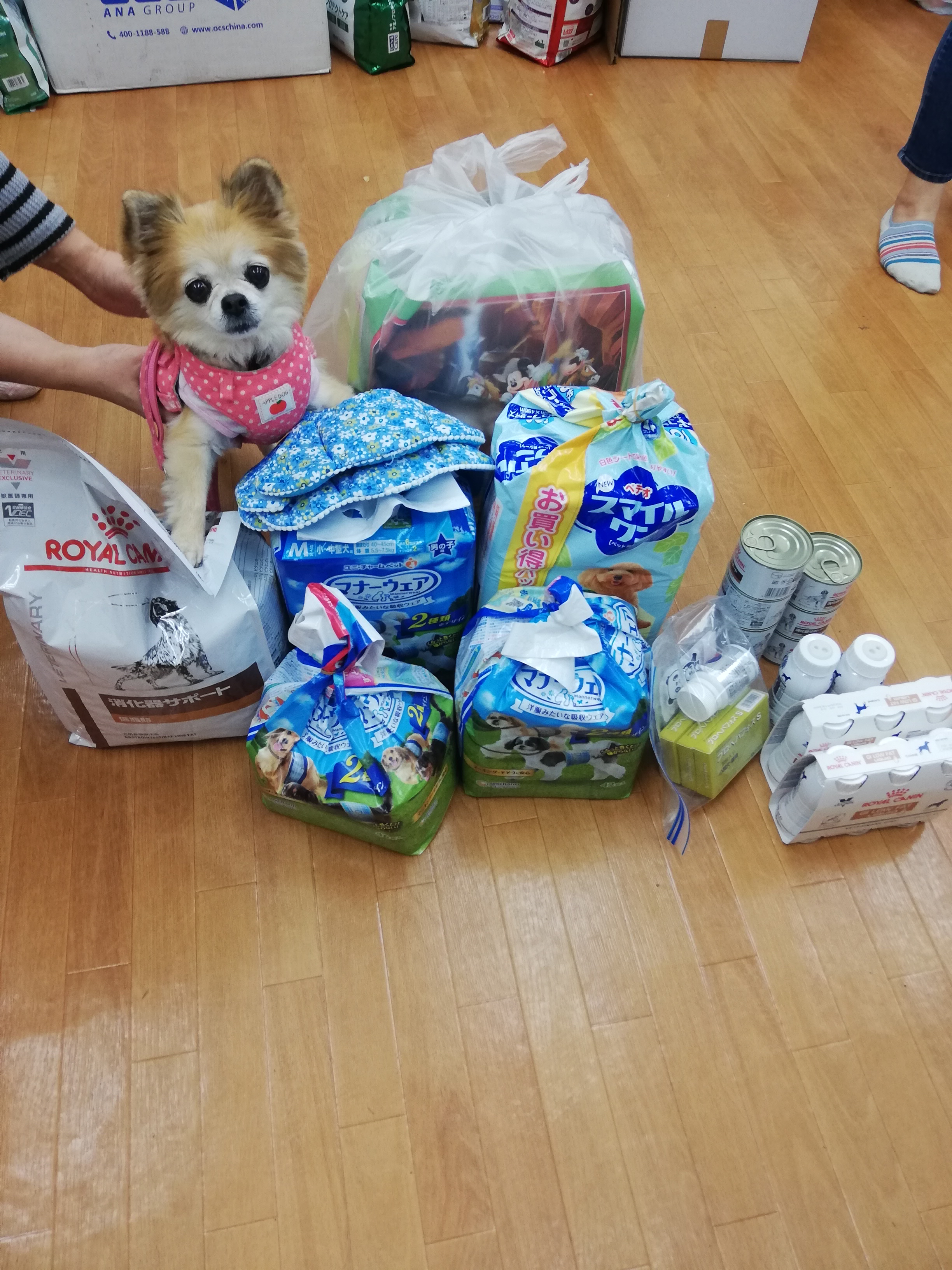 横浜市のコテツ様より、愛犬さんの為にご用意されていたリュックやフード、ウェットティッシュ、尿パッドなどのたくさんの物資を頂きました。ありがとうございます。