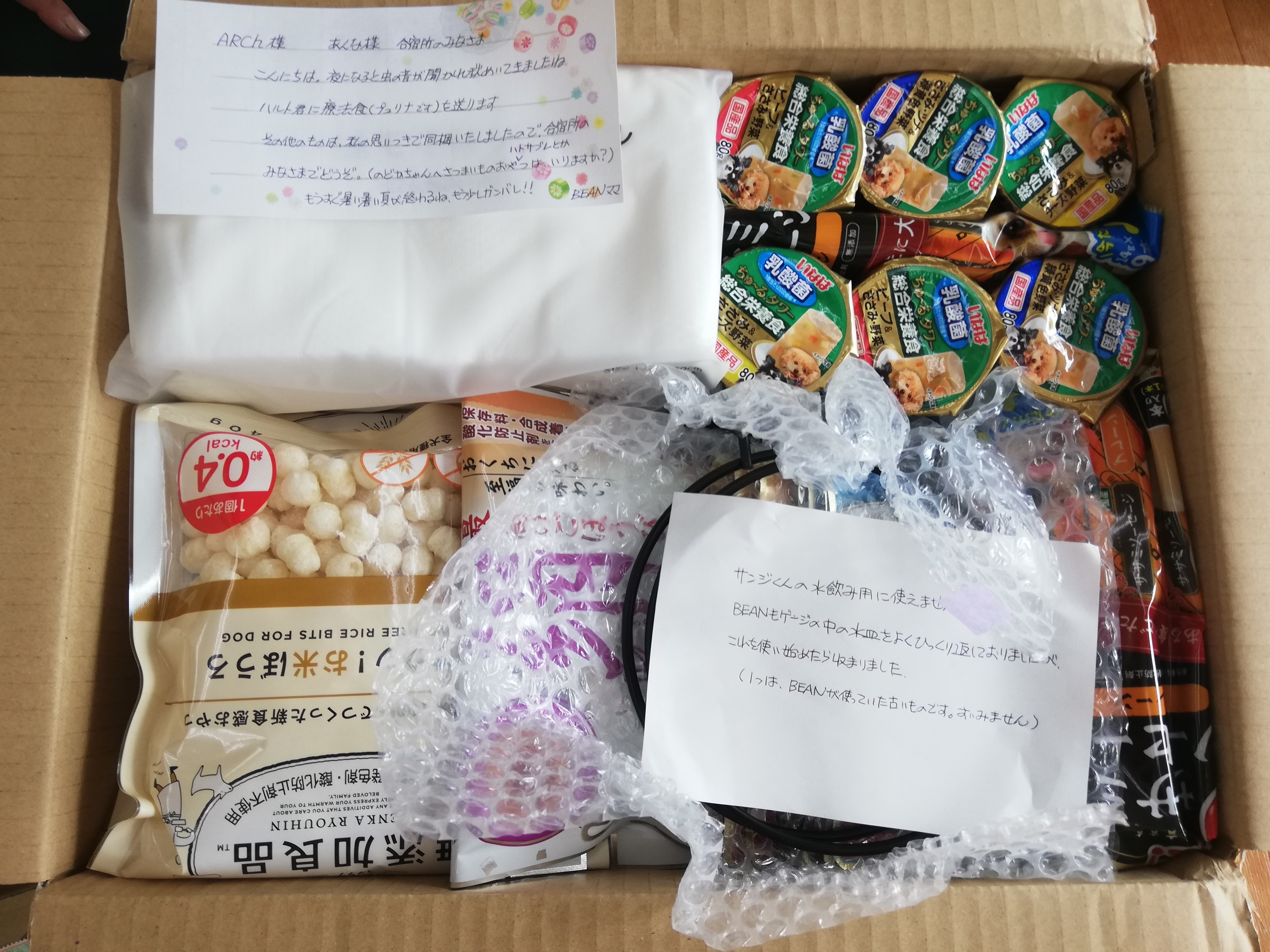 鎌倉市のBEANママ様から、ハルトのフードや、低脂肪のおやつ、食器ホルダーなどを合宿所のARChっこ達に頂きました。食事制限が多く、好き嫌いのある子達にとても助かります。大切に使わせて頂きます。