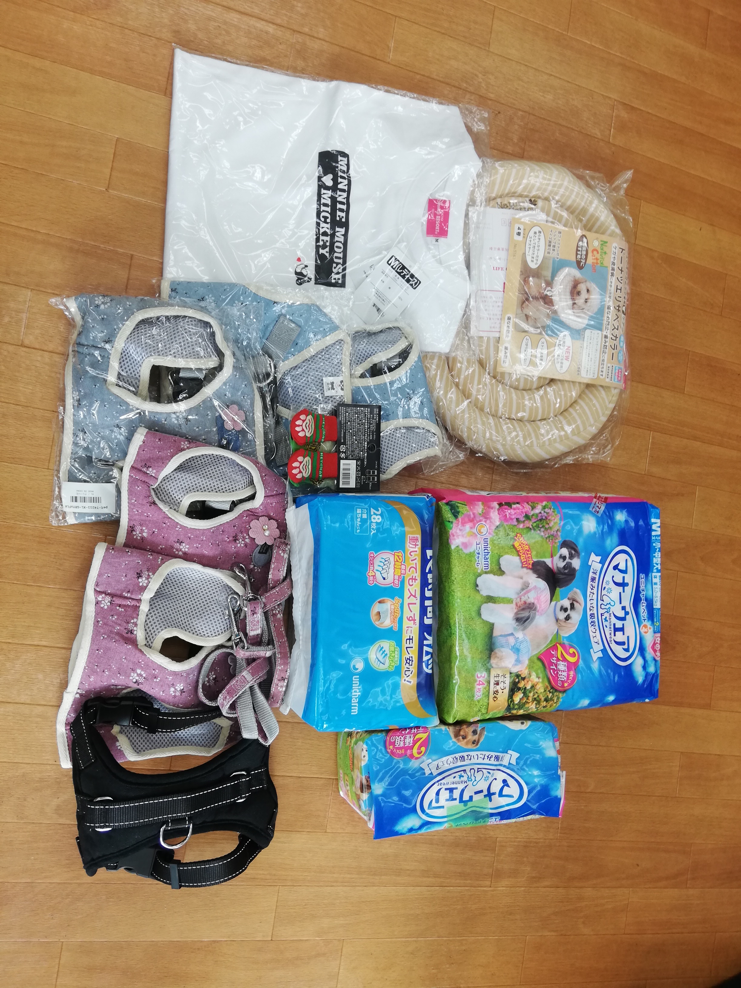 卒業生茜ちゃんのおかあしゃん様から、ハーネスやリード、人用Tシャツ、オムツなどをご支援頂きました。