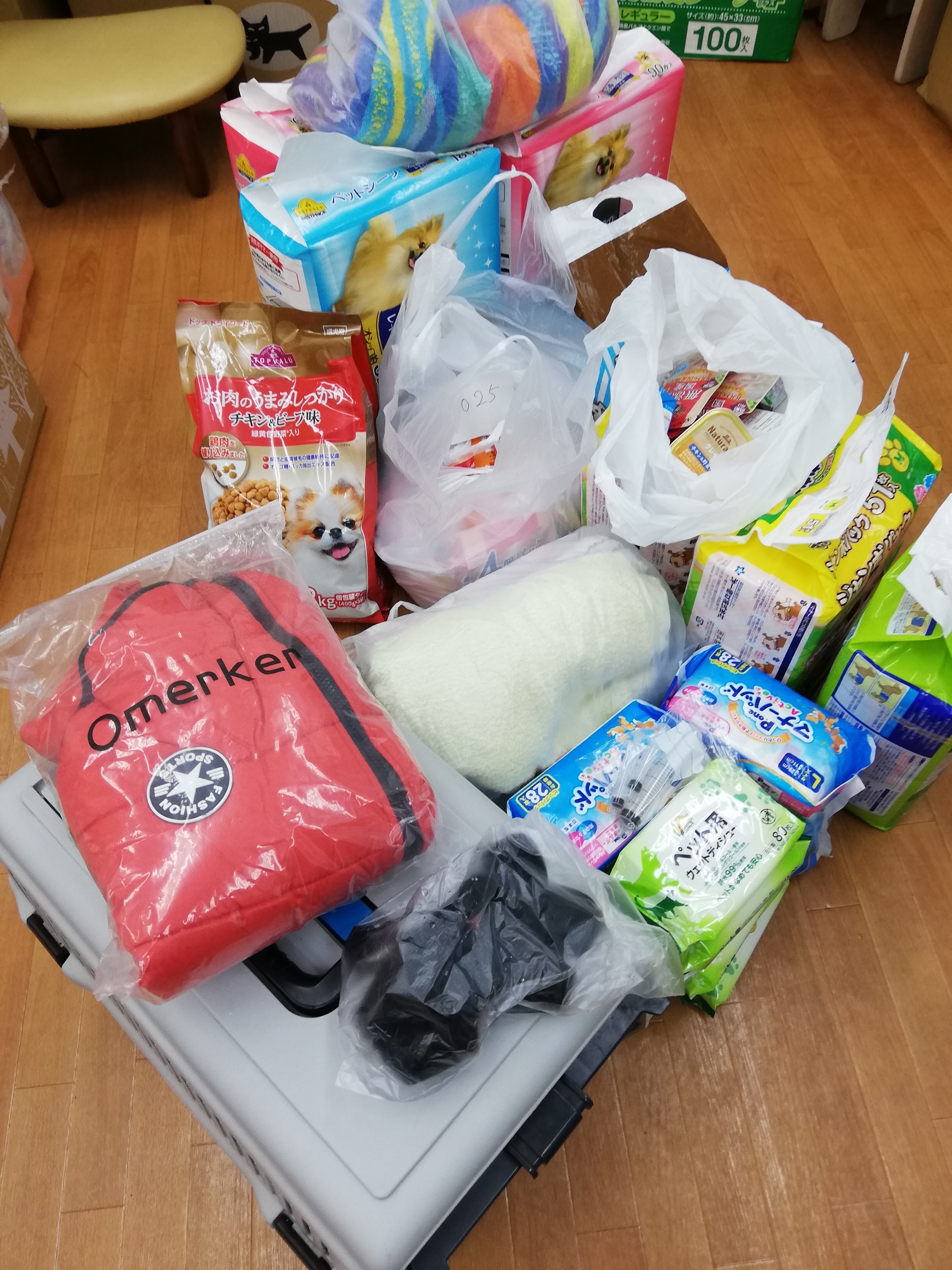 千葉県の富士丸様が、ペットシーツやオムツ、フード、フロントラインなどたくさんの物資をご支援くださいました。事務所までお届けくださりありがとうございました。