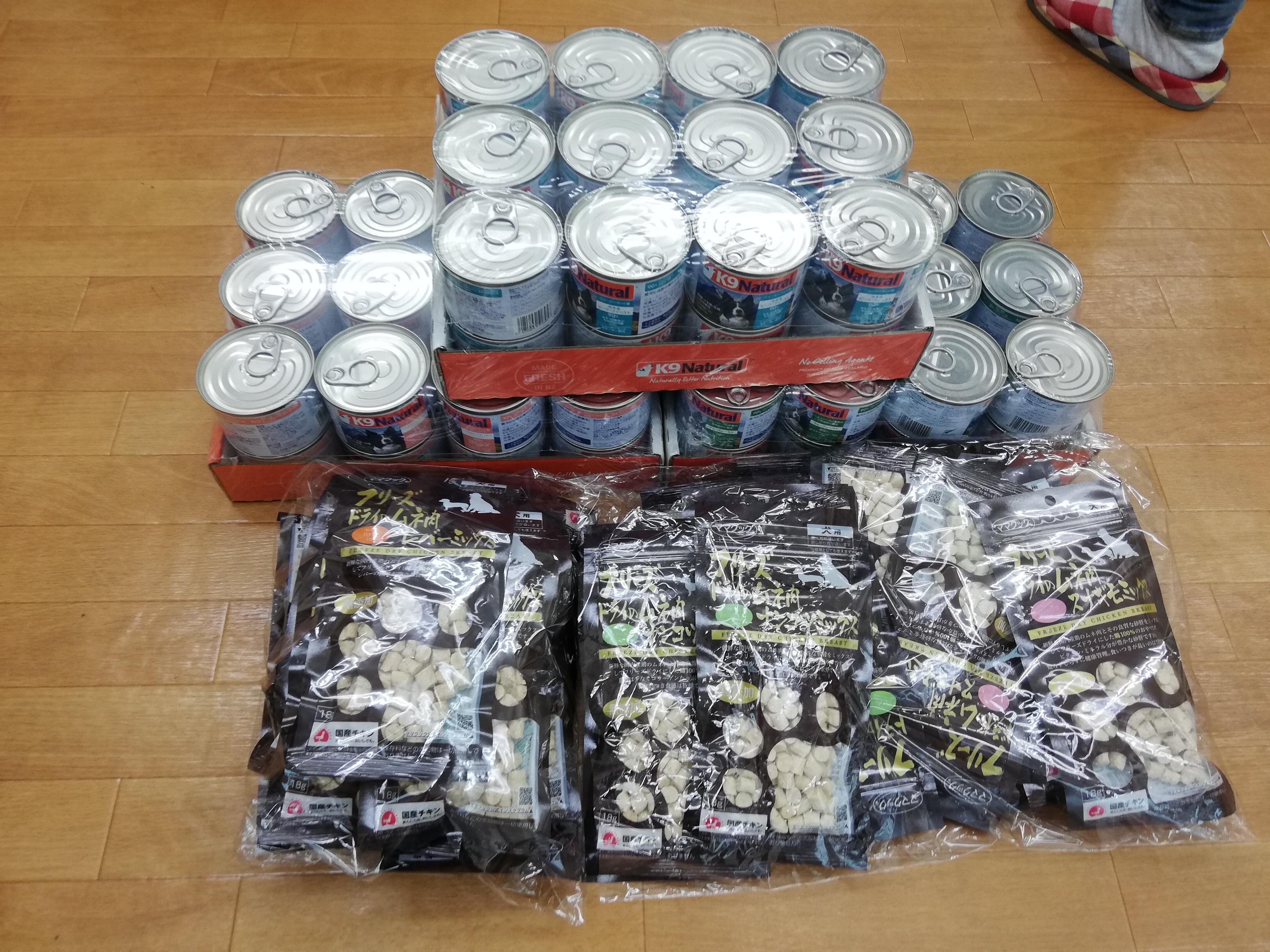 協力病院でご一緒の栗山様より、レトルトやドライのワンコフード、キャットフード、クーハンなどのご支援を頂きました。ありがとうございます。