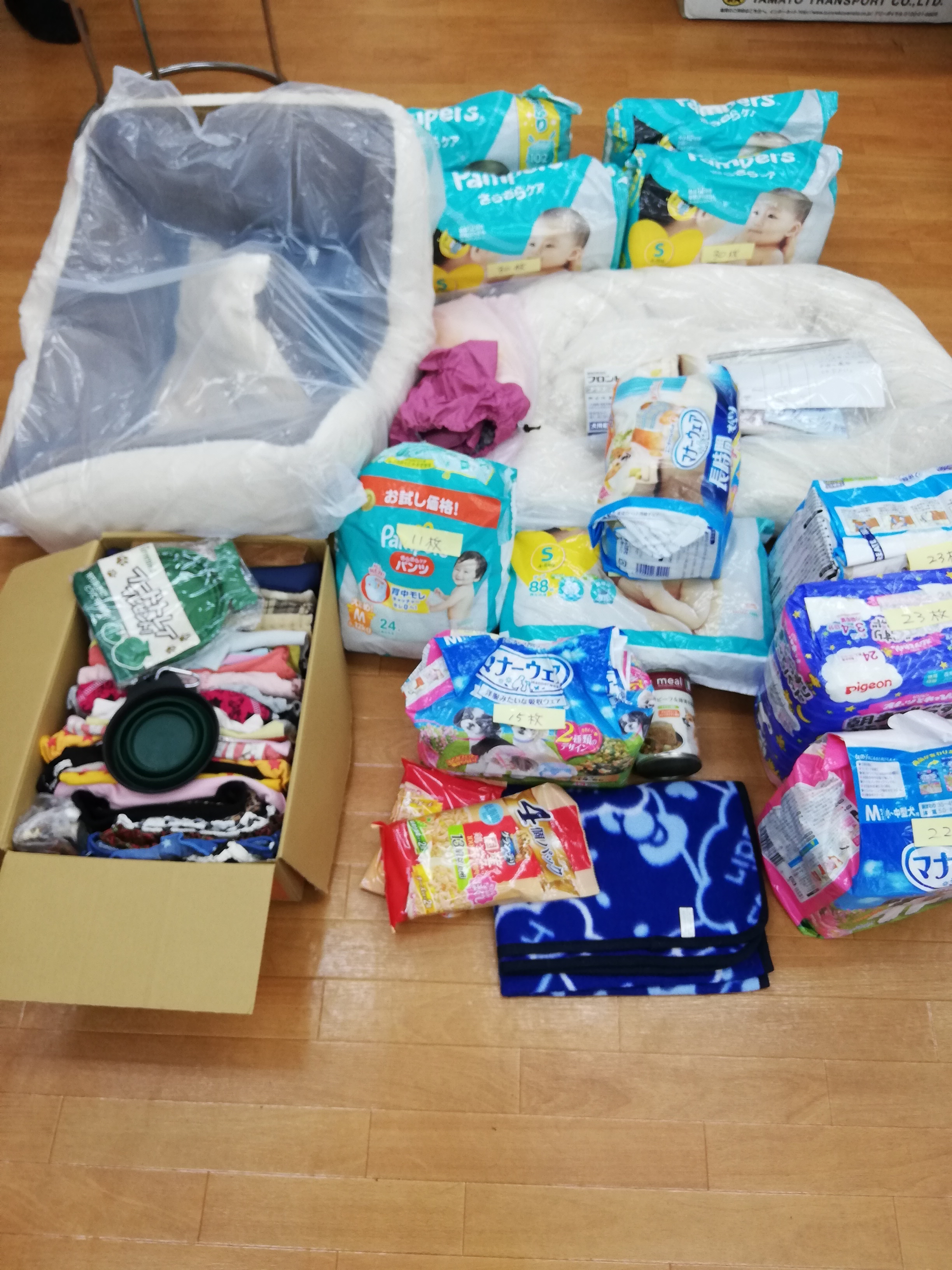 千葉市の匿名様より、ワンコ用の服やペットシーツ、雑貨、フリマ物資、スタッフへのお菓子、などたくさんのご支援を頂きました。
