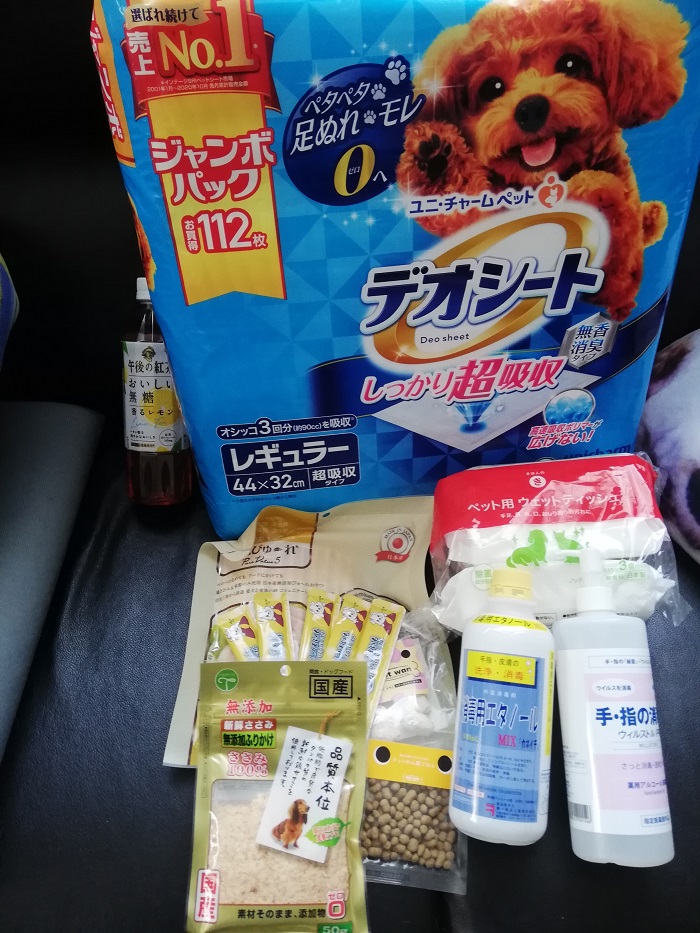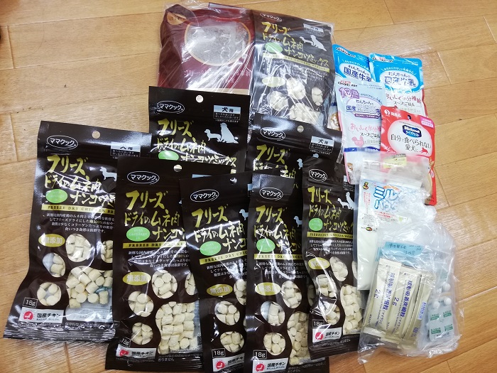 のどかさんのサポートママさんでもある鎌倉市のBEANママ様から、のどかさんの好きな缶詰やおいものおやつ、子犬達のミルク、洗剤、お手入れシートなどS☆KGのみんなのためのご支援を頂きました。