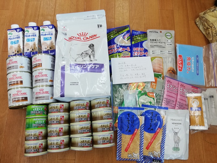 静岡県函南町のN様より、愛犬ちゃんの為にご用意されていた、介護食やおやつ、お薬などのご支援を頂きました。