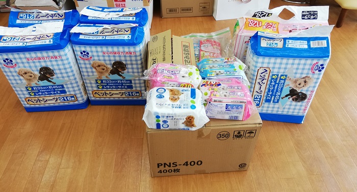 松戸市のひろチル様より、保護犬達の為に各種フードやたくさんのシーツのご支援を頂きました。