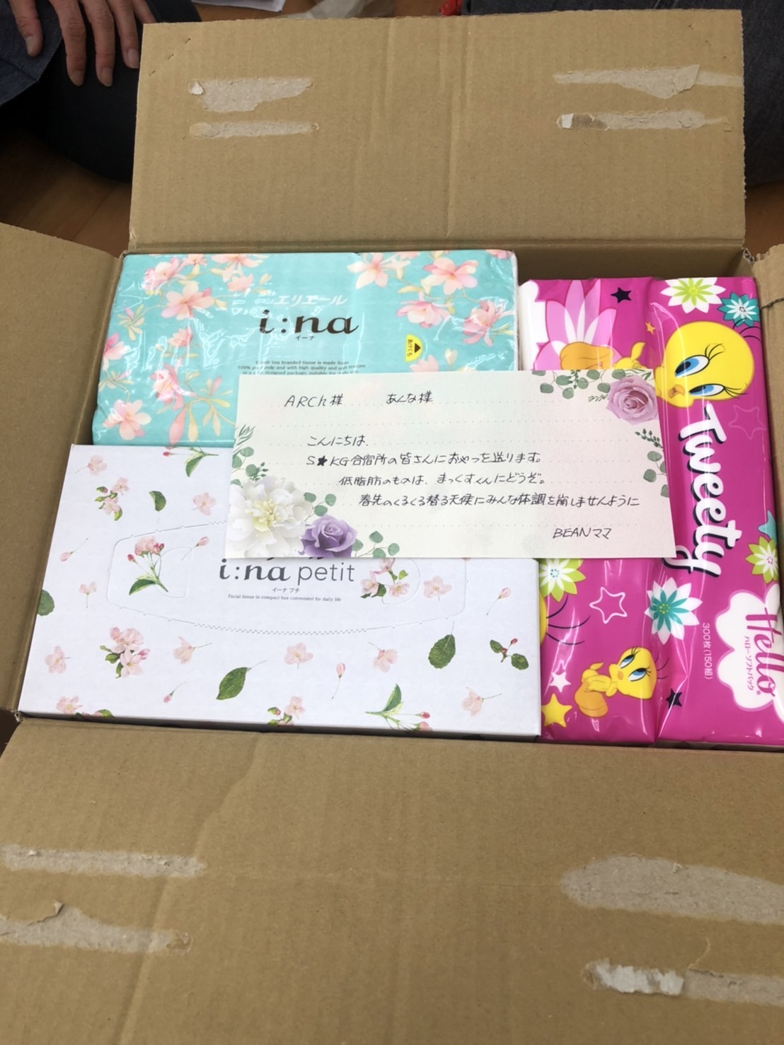 船橋市のロンちゃん様よりのご支援品をご家族様が届けてくださいました。