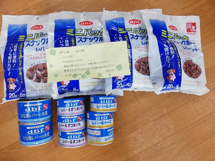 千葉市の匿名様から、フードやおやつ、ワンコ服やおもちゃ、フリマ用手作り雑貨などのご支援を頂きました。大切に保護犬達の為に活用させていただきます。