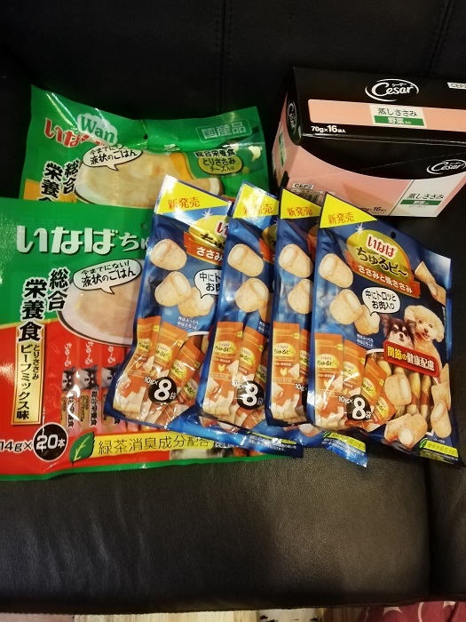 名古屋の若葉ちゃんママ様から、ちゅーるやちゅるびーなどたくさん頂きました。ちゅるびーもちゅーるも投薬や食欲のない時にとてもと便利で助かります。
