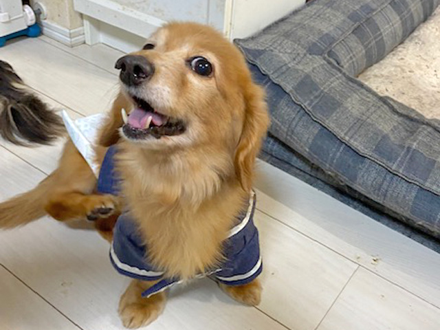 | ・お願いしたいこと | トイレの場所の認識はしていますが、失敗します。マナーベルトは大人しくつけさせてくれます。 普段はとても人懐こくで甘えん坊ですが、嫌なことや叱られると逆切れすることがあります。 |