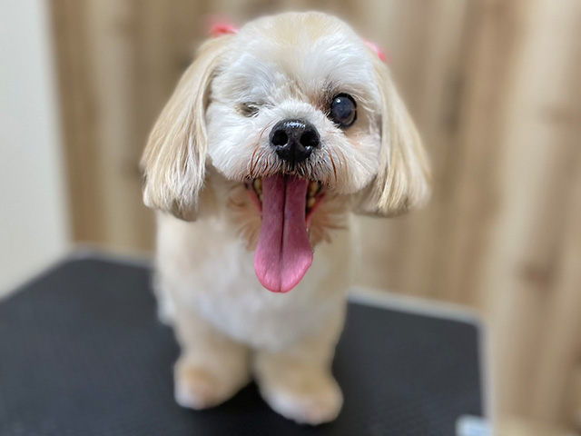 | ・お願いしたいこと | トリミング必要犬種です。日々のブラッシングや定期的なトリミングをお願いします。 複数の腫瘍があり切除手術をしました。 病理検査結果、術後は良好ですが術後1年くらいは3ヶ月ごとくらいのチェックをしていました。 ほとんど聴力がないと思われますので、慣れるまではお散歩の時はリードを見せる、などで何をするのか教えてあげてから行動するようにしてあげてください。 右目は小眼球で眼球摘出しているので左目のみの視力です。 心雑音があります。現時点で投薬の必要はありませんが、3ヶ月に1度程度の経過チェックをしています。 併せて乳腺など触診での再発がないかの確認はしています。 |